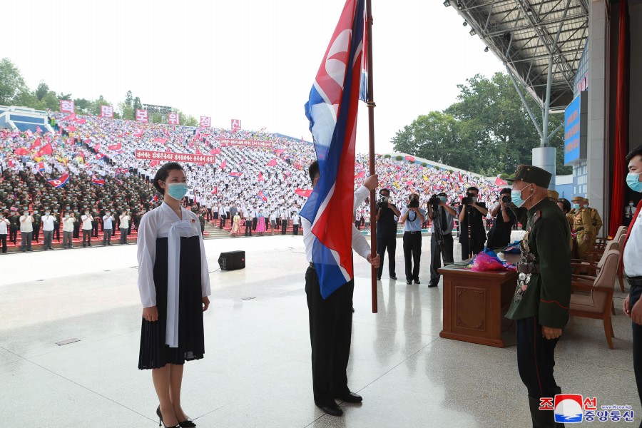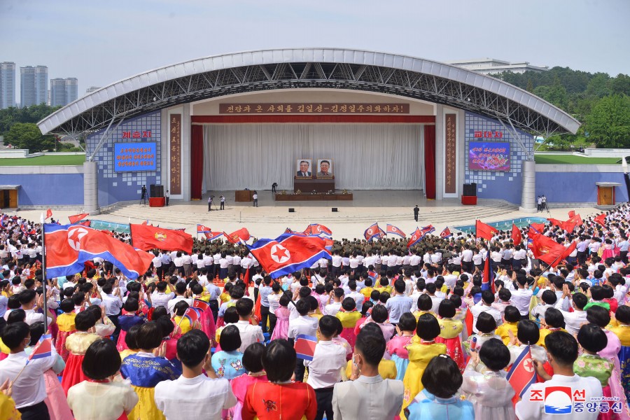 Shromáždění se zúčastnili členové prezídia politbyra Ústředního výboru Korejské strany práce.
