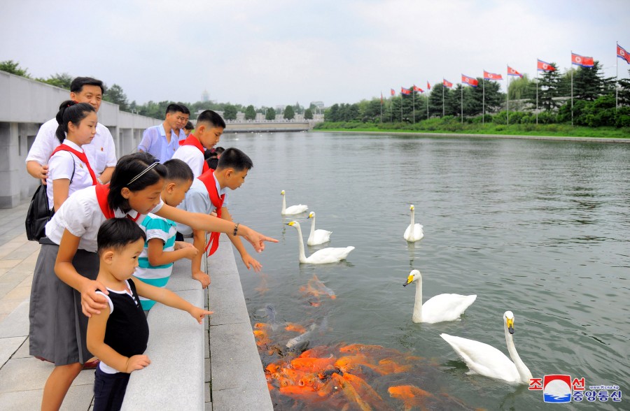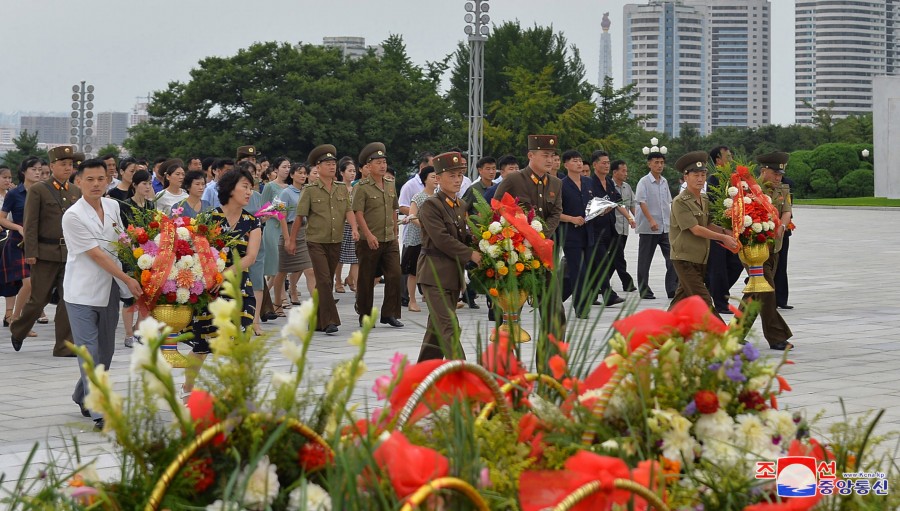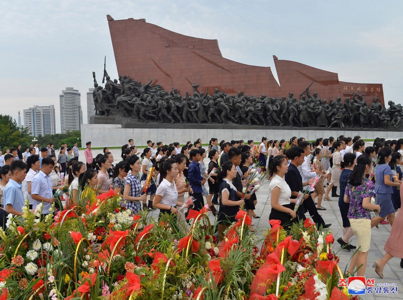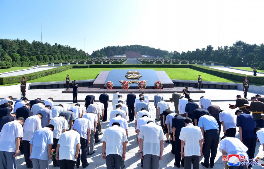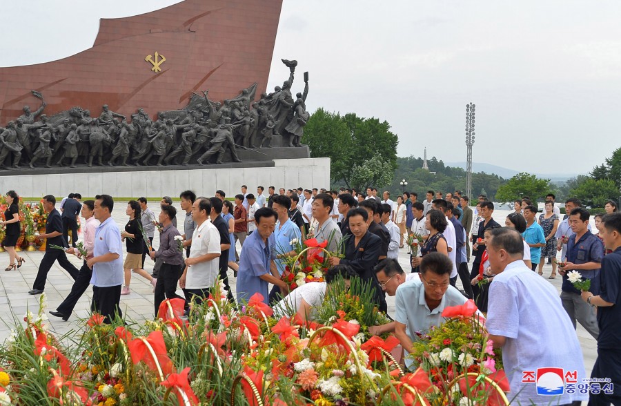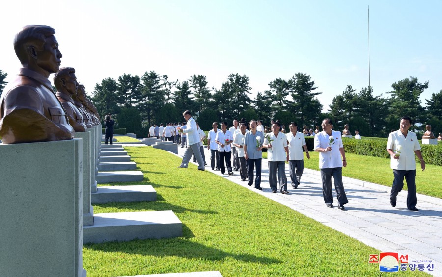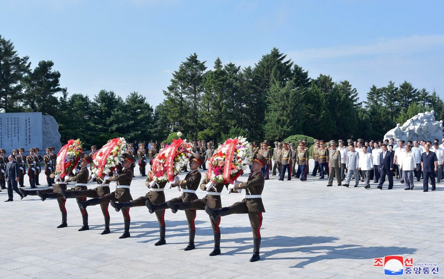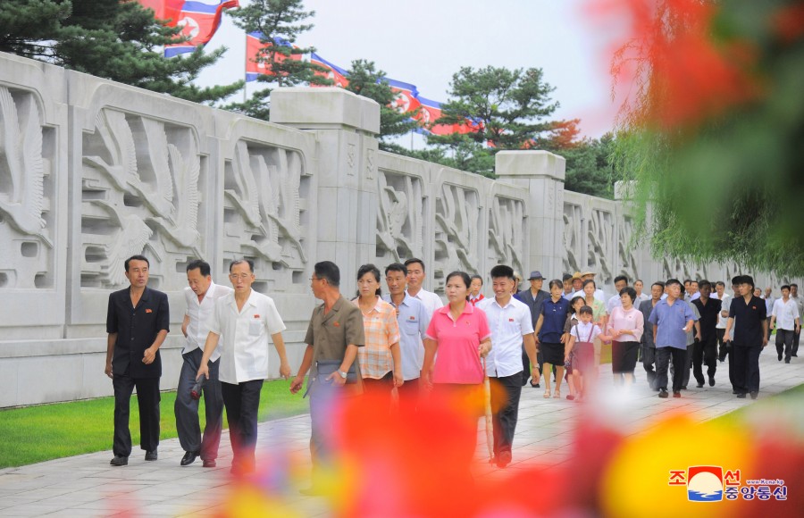 Položení věnců na čestném pohřebišti revolucionářů Tesongsan