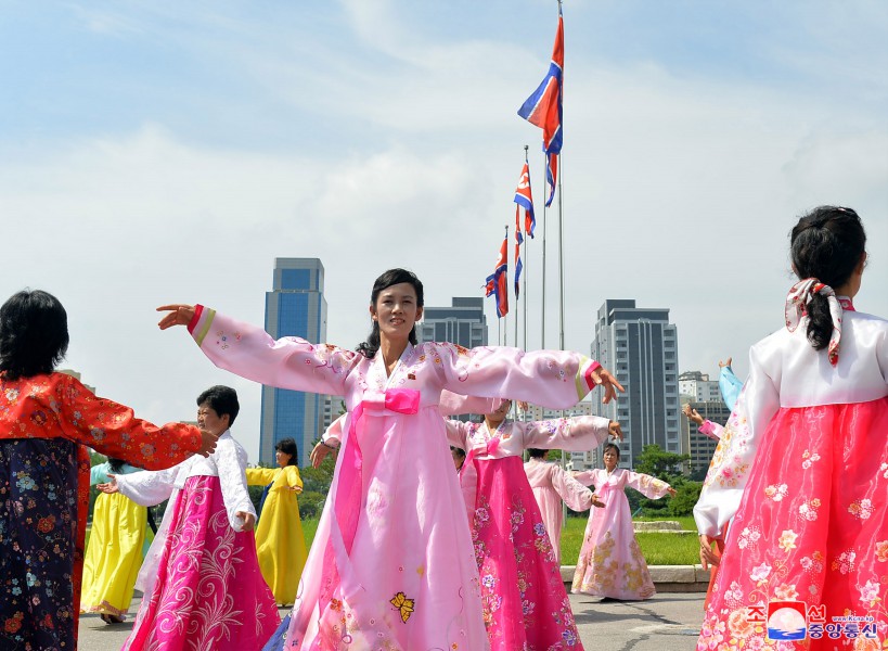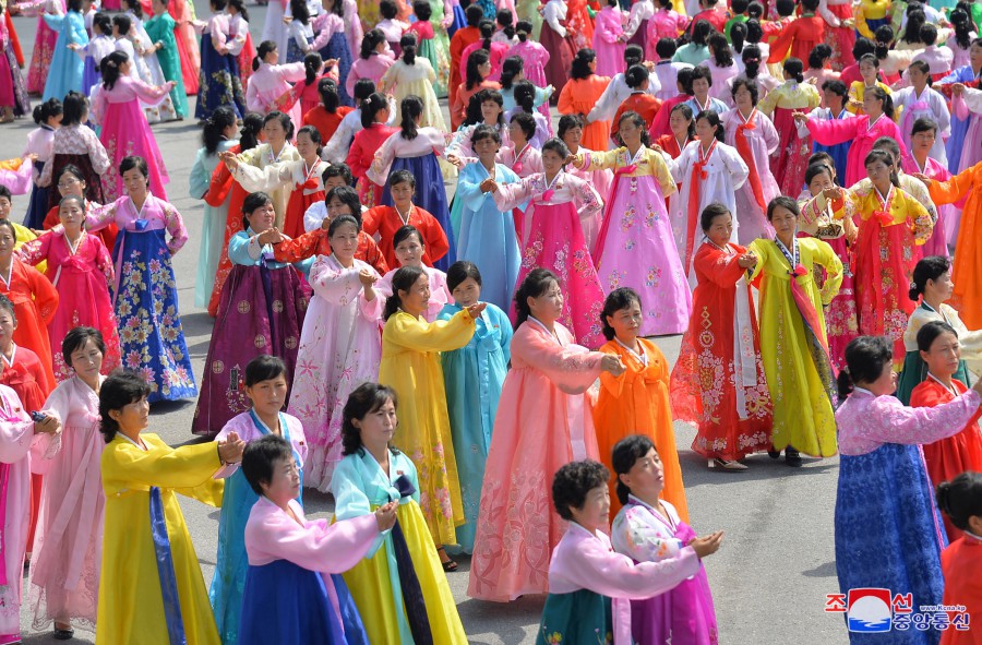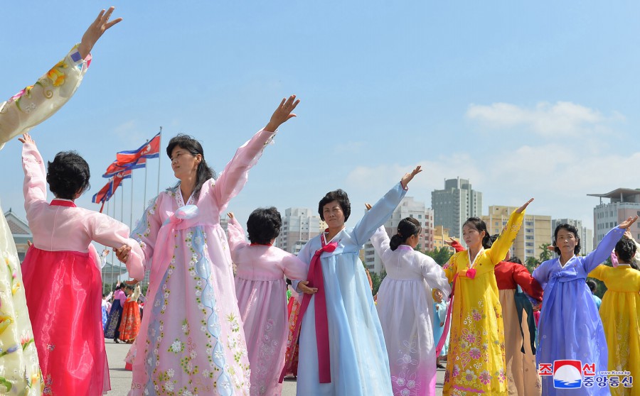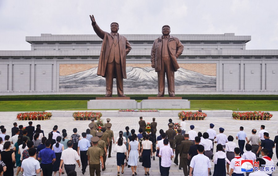 Položení květin k sochám velkých vůdců a oslavy v celé zemi