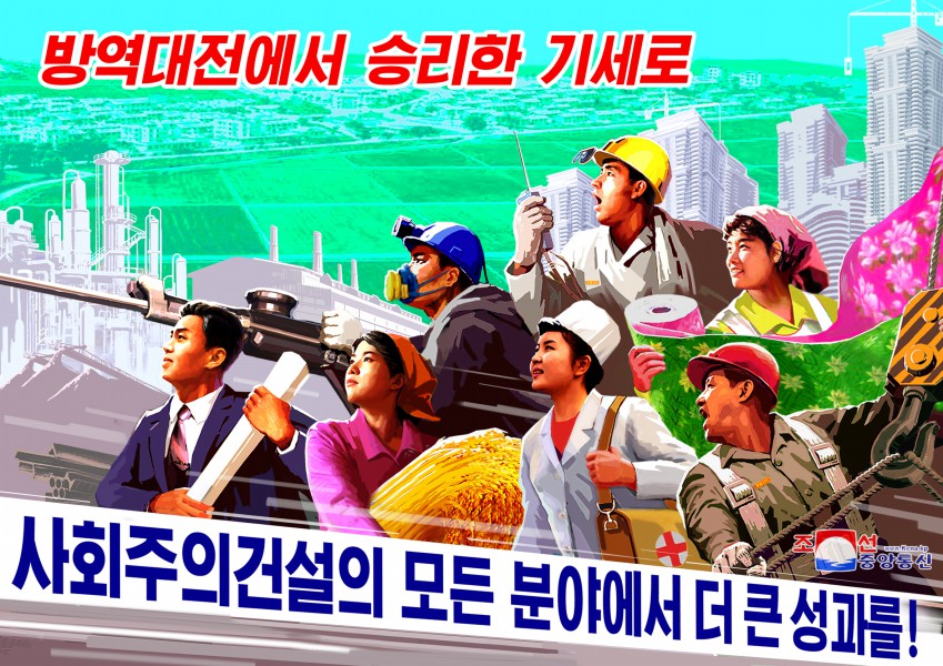 Plakát „Se stejným duchem, s jakým jsme vyhráli protiepidemickou válku, dosáhneme výraznějších úspěchů ve všech sférách výstavby socialismu!“ odráží ducha celého lidu, odhodlaného dát silnější podnět boji za splnění bojových úkolů stanovených 8. sjezdem Korejské strany práce a plény Ústředního výboru strany.