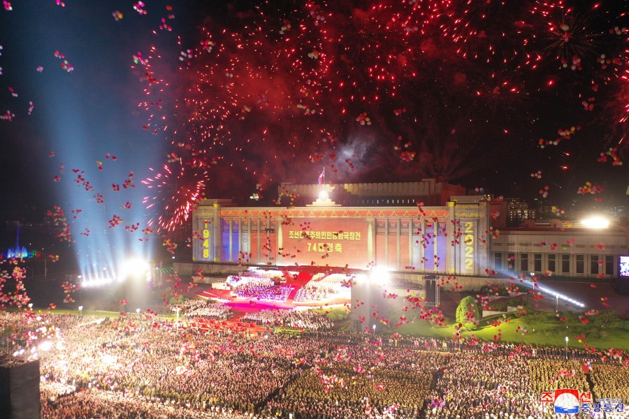 Pchjongjang 9. září čučche 111 (2022) (KCNA) – 8. září večer se v Pchjongjangu na úpatí historického vrchu Mansude, kde majestátně stojí bronzové sochy velkých soudruhů Kim Ir Sena a Kim Čong Ila, průkopníků a vůdců budování socialistického státu, konaly slavnostní akce na počest 74. výročí založení republiky.