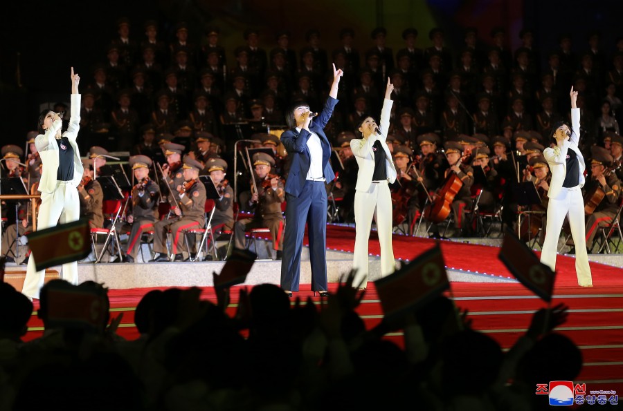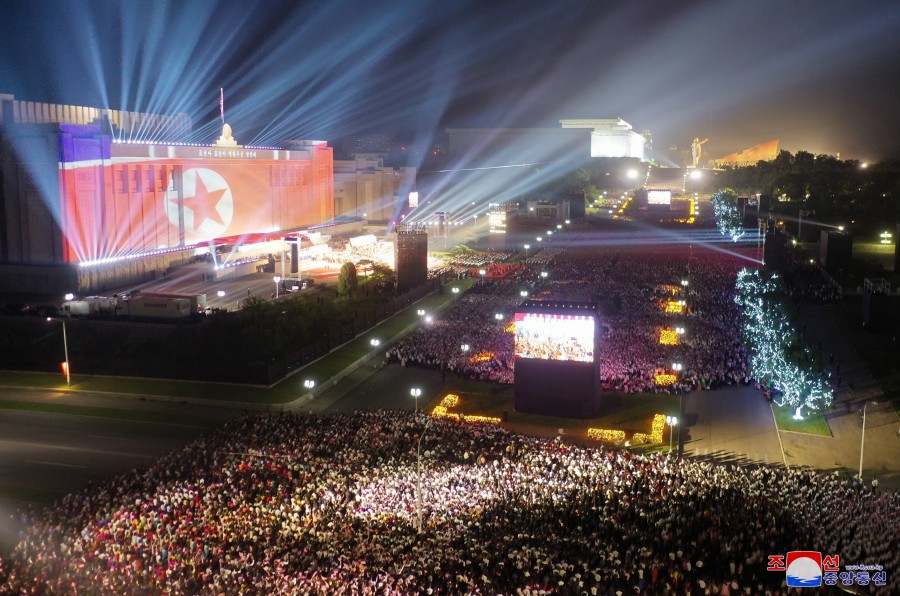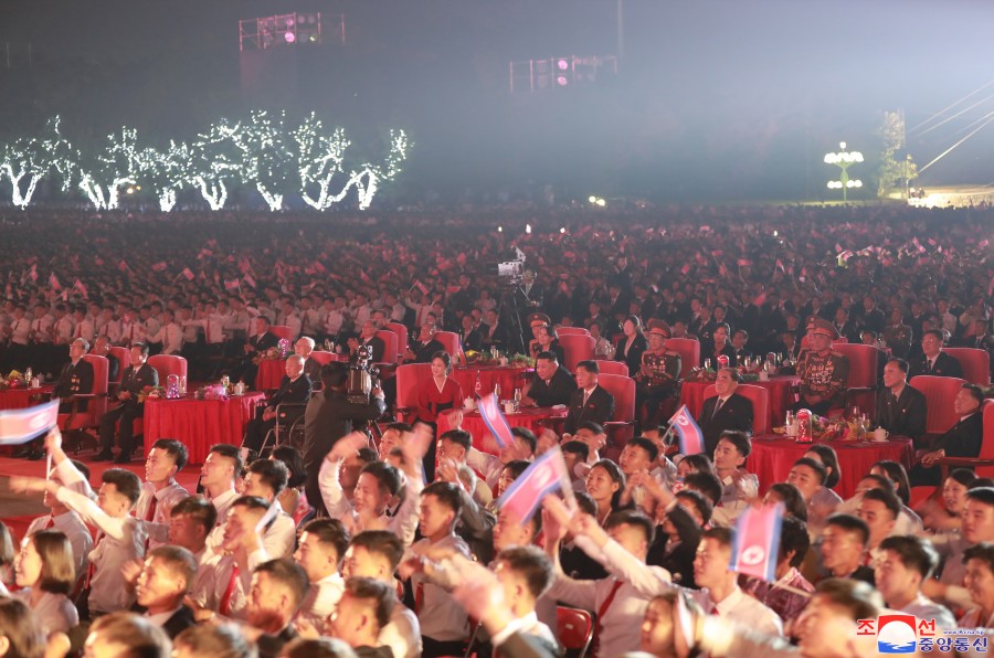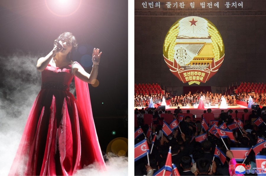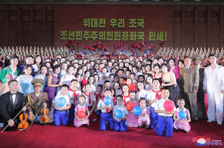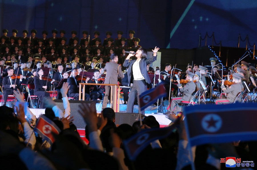 Před Palácem shromáždění Mansude, který byl postaven v centru hlavního města jako monumentální památník éry Strany práce, začal slavnostní koncert.