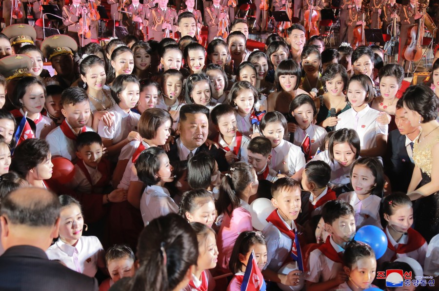 Soudruh Kim Čong Un vyjádřil velkou spokojenost s úspěchem koncertu, osobně vystoupil na pódium, poblahopřál účinkujícím a nechal se s nimi na paměť vyfotografovat.
