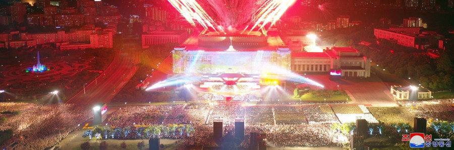 Rozlehlé místo pro slavnostní události, mimořádně upravené na území mezi Palácem shromáždění Mansude a Lidovým divadlem, bylo plné obyvatel hlavního města všech vrstev, mládeže a studentů, kteří se sešli, aby si připomněli narozeniny našeho velkého státu.