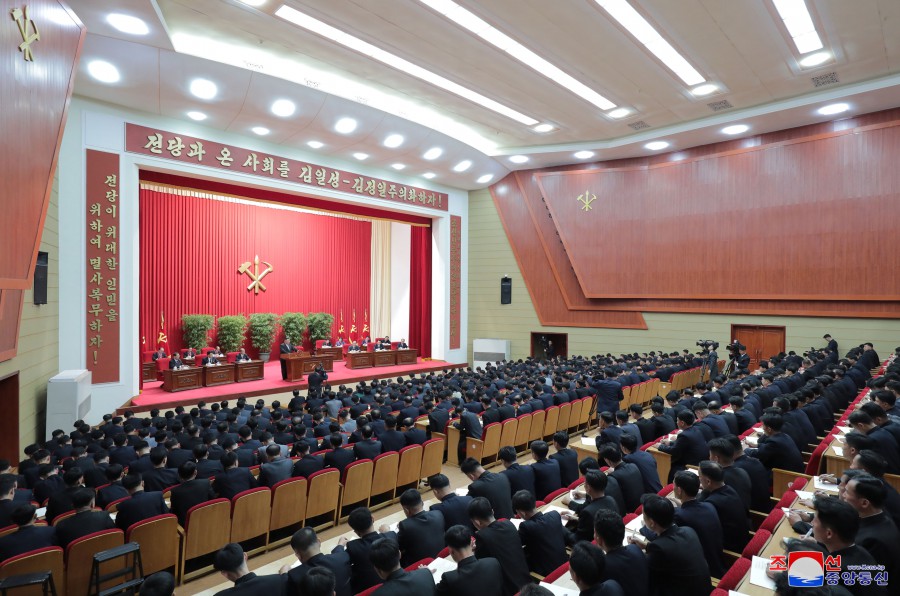 Generální tajemník Korejské strany práce vážený soudruh Kim Čong Un přednesl před učiteli a funkcionáři historicky významnou přednášku „O orientaci budování naší strany v nové době a úkolech Ústřední školy pro přípravu kádrů KSP“.