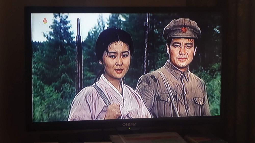 Vysílání Korejské ústřední televize – televizor domácí značky Arirang (pojmenovaný dle korejské lidové písně)