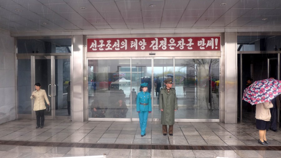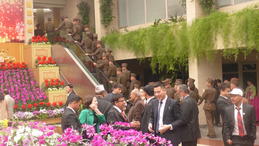 Krásná byla na výstavách kimirsenií setkání s běžnými Korejci, k čemuž jinak bylo málo příležitostí. Mezi ně patřily kolektivy škol a školek se svými učitelkami (jen ženami). Byla i přehlídkou překrásně upravených korejských dozorkyň v pestrých vzorech lidových krojů „čoson-ot“, jež bylo možné bez řečí legálně fotografovat (na ulici by se za takové focení zlobily), stejně jako vojačky Korejské lidové armády, jejichž snímkování bylo v jiných případech zcela nepřípustné. Malí pionýři a pionýrky v krojích s rudými šátky, ale i v civilním oblečení včetně bund Adidas (což byli asi ti, kteří ještě nedorostli k přijetí do Korejského svazu dětí) na mě hleděli někdy udiveně vzhůru, protože zjevně nebyli zvyklí vidět tak vysokého člověka, na jejich poměry (195 cm). K personálu patřila například i soudružka v dlouhém fialovém koženém kabátě, na naše poměry poněkud výstředním.