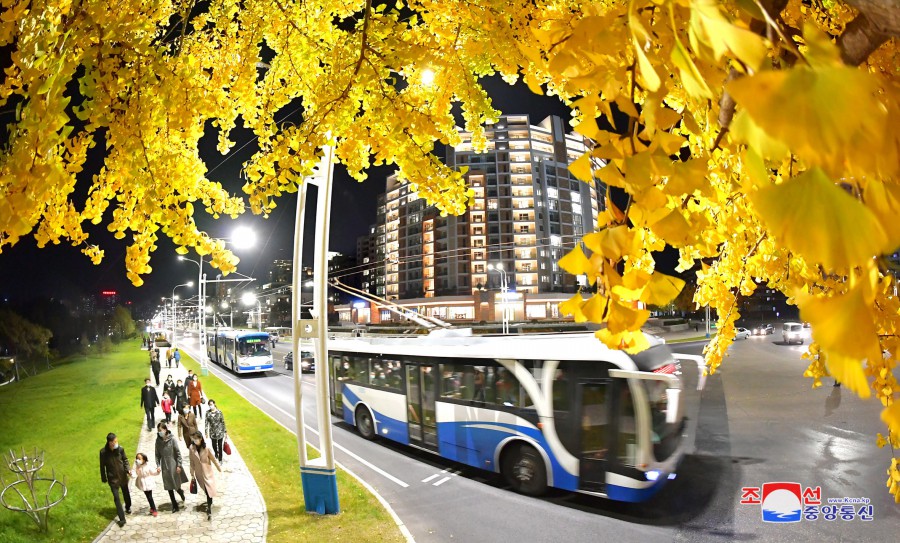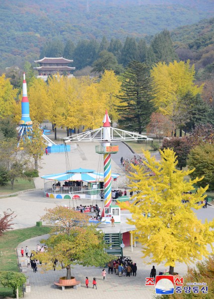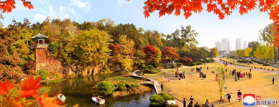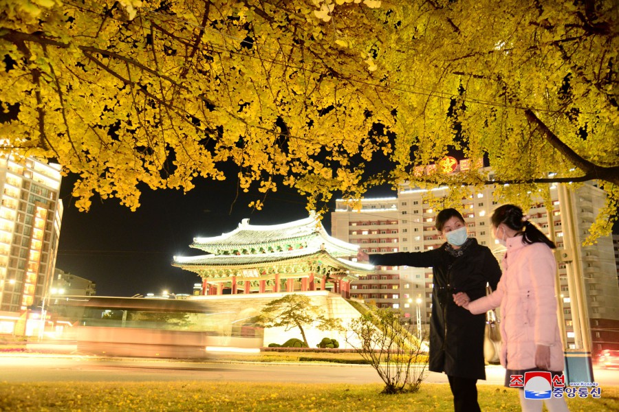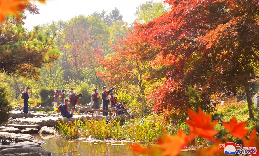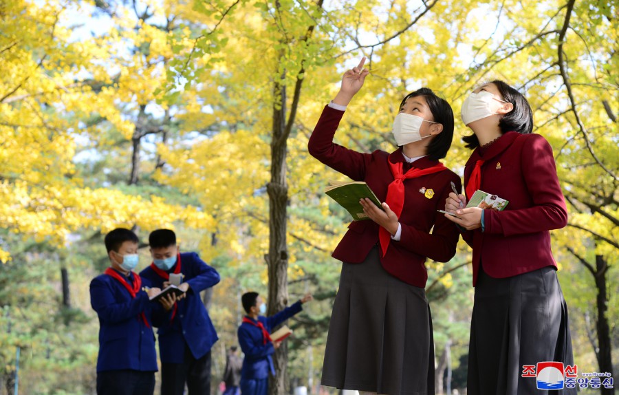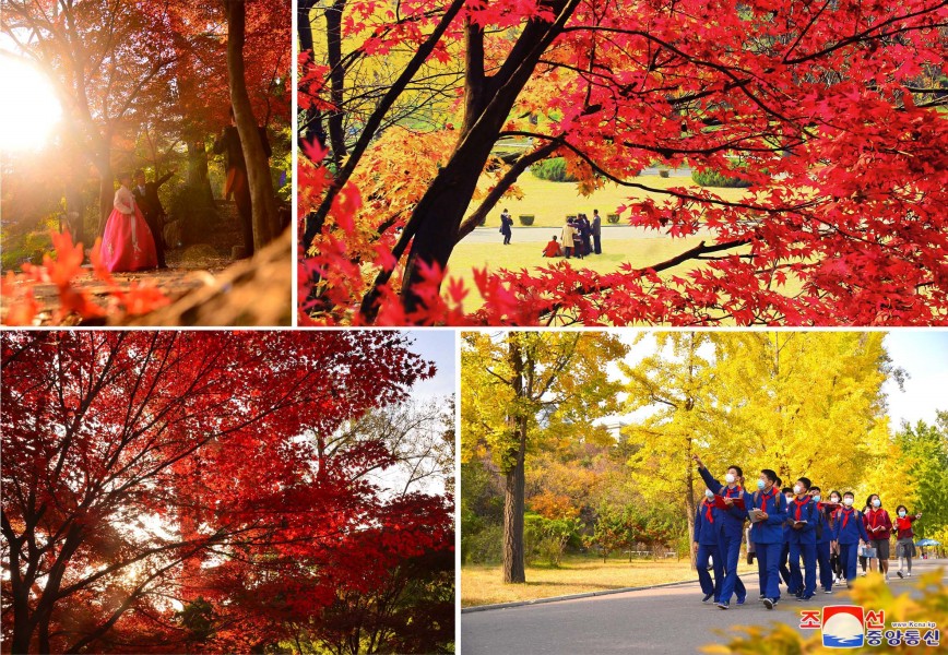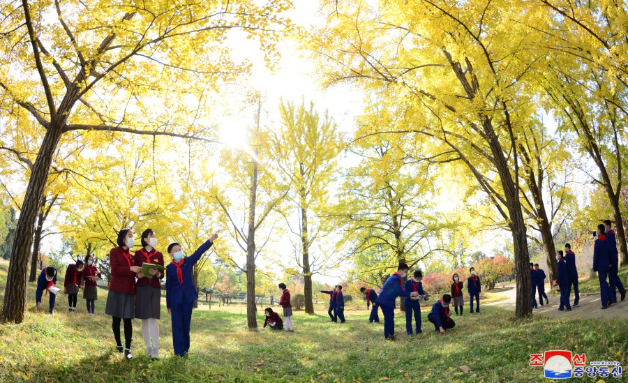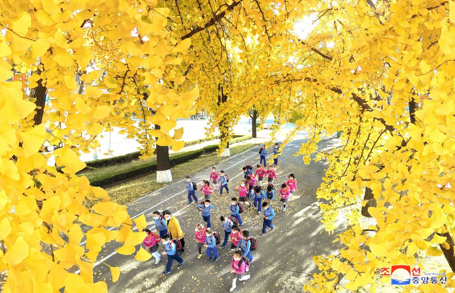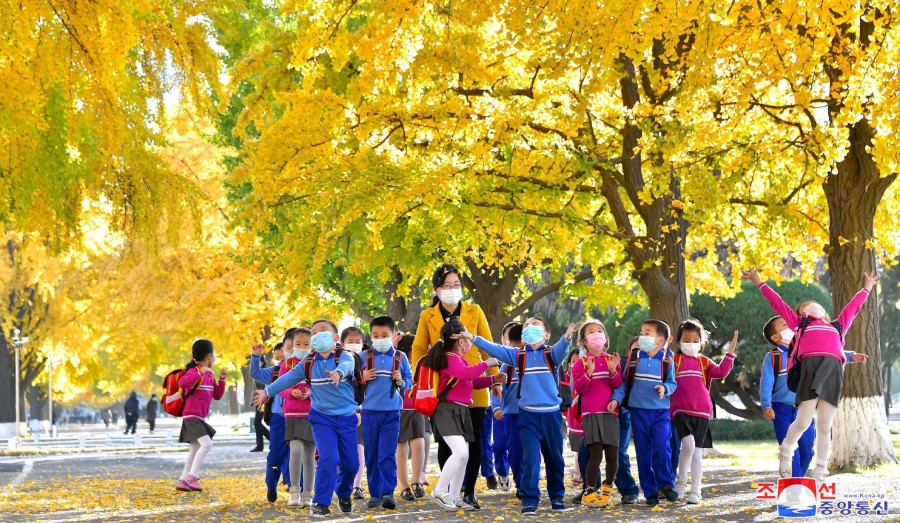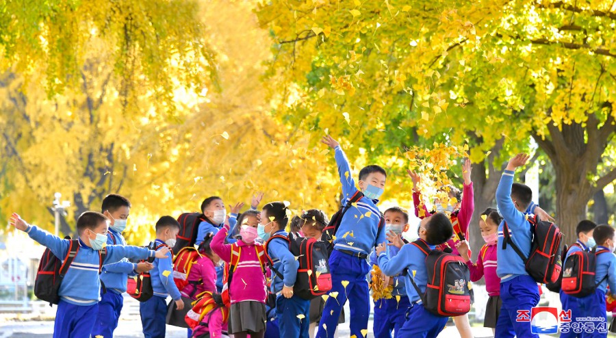 Pchjongjang 27. října čučche 111 (2022) (KCNA) – Podzimním listím zbarvené a podzimem vonící ulice hlavního města Pchjongjangu jsou plné šťastného smíchu dětí.