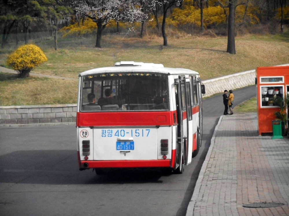 Autobusů bylo k vidění mnoho i čínských a japonských značek, výjimečně i jihokorejský Hyundai (foneticky zjednodušeně Hjonde). Mimo Pchjongjang nejezdily skoro žádné, jen výjimečně pomalu jedoucí starší vůz v dost žalostném stavu, nejspíš jako zaměstnanecká doprava. Některé japonské autobusy jsou dokonce v levostranném provedení (v Japonsku se jezdí vlevo, v KLDR vpravo jako u nás), takže se vystupuje do silnice. Velká většina je ale pravostranných.
