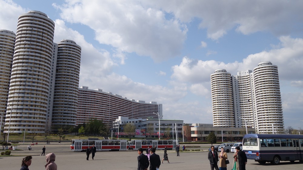 Nad celou oblastí mohutně dýmá Pchjongjangská tepelná elektrárna. Po cestě do centra města je vidět výstavba stále dalších nových obrovských bytových domů až se 40 poschodími. Zbývající poválečné domy s přízemím a čtyřmi patry se pod nimi dost žalostně krčí, i když jsou pěkně udržované a vzhledově působí stále pěkně a domnívám se, že z historického a kulturního hlediska by bylo žádoucí alespoň část takové zástavby zachovat.