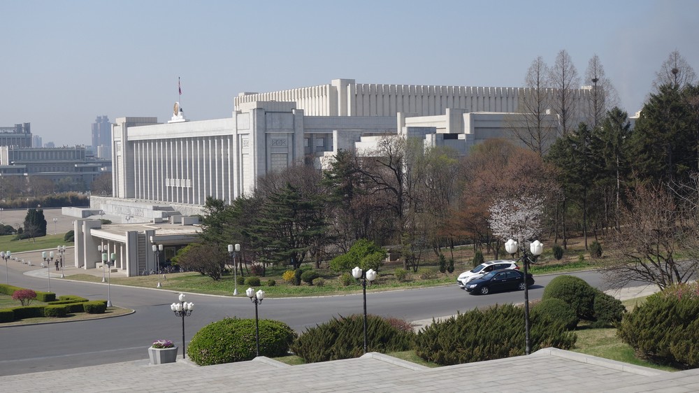 Palác shromáždění Mansude, v pozadí se vlevo tyčí hotel Korjo