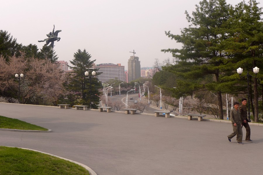 Velký památník na Mansude bylo možné si poměrně dobře zblízka prohlídnout, ale když jsem chtěl vidět detaily obrovských sousoší (více než 200 soch) na bočních pomnících, hlavně v jejich zadní části, hned jsem byl odtamtud vyhnán. Možná protože se neslušelo koukat na sochy velkých vůdců zezadu či snad je dokonce odtamtud fotografovat. Tyto sochy nesmějí být fotografovány ani zboku (i když na oficiálních fotografiích někdy zboku jsou a zákaz není vymáhán vždy a důrazně, takže takové snímky leckdo včetně mě má) a zejména ne v detailu.