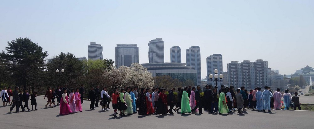 Myslím, že poklony velkým vůdcům u jejich soch, mozaik a obrazů patří jen ke slavnostním příležitostem, zpravidla jsou kolektivně organizovány a rozumí se, že při této poctě jsou účastníci vybraně oděni. K Velkému památníku na Mansude se také často ubírají svatby; novomanželé a svatebčané se zde fotografují.