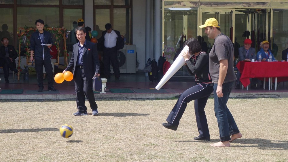 Se svými písněmi pak za doprovodu elektrického piana vystoupily i korejské servírky. Podobnou akci jsem zažil o dva roky později v Pchjongjangském golfovém klubu. Výsledky červeného družstva Solidarita a žlutého družstva Přátelství byly 2:2 (myslím, že to byl záměr organizátora, aby všichni byli spokojeni). Na tomto sportovním dopoledni mi byla svěřena úloha sudího, což při mé naprosté sportovní neznalosti bylo pro mě skutečně trapné, ale nešlo odmítnout. Rozhodlo prý to, že jsem vysoké postavy a mám silný hlas. Naštěstí mi s mým nezvyklým údělem pomáhal soudruh Pak Kum Il z Korejského svazu společenských vědců, který mi říkal vše, co a jak mám dělat a říkat, takže to dobře dopadlo. Ke svému soudcování jsem měl zapůjčenu pěknou rudou píšťalku s budovatelským motivem, bohužel po hře jsem ji musel vrátit a nestihl jsem si ji ani vyfotit.