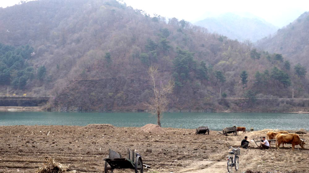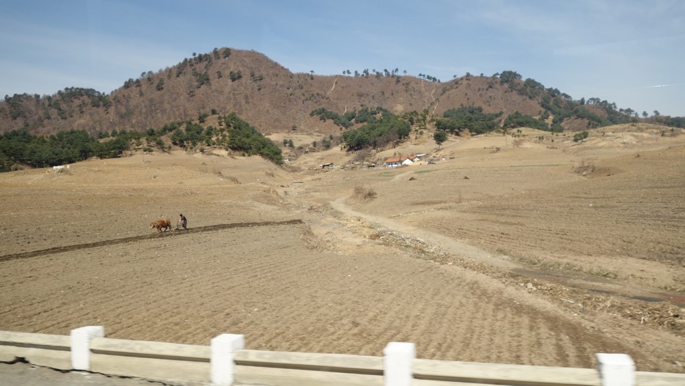 Na traktorech při polních pracích často vlály rudé prapory, mohli jsme vidět také jednotlivé pracovní skupiny pochodující v čele s rudým praporem. Leckde se oralo ještě se zvířaty, konkrétně s voly. Koně jsem neviděl. Odpůrci KLDR to zesměšňují, ovšem Korea nemá naleziště ropy pro pohon strojů a je to právě nátlak zahraničních odpůrců, který jí znemožňuje dostatečný přísun ropných produktů. Bránit suverénnímu státu v hospodářském rozvoji a potom ho zesměšňovat za to, že se nemůže dostatečně rozvíjet, to je logika imperialistických vlků a válečných štváčů. Otázkou je, zda a jak v tomto směru pomůže po rozkolu se Západem Rusko, ale musíme mít na paměti, že to není žádná charitativní organizace a má jistě jiné zájmy než pomoc svému, z ruského hlediska územně nepatrnému, jihovýchodnímu spojenci.