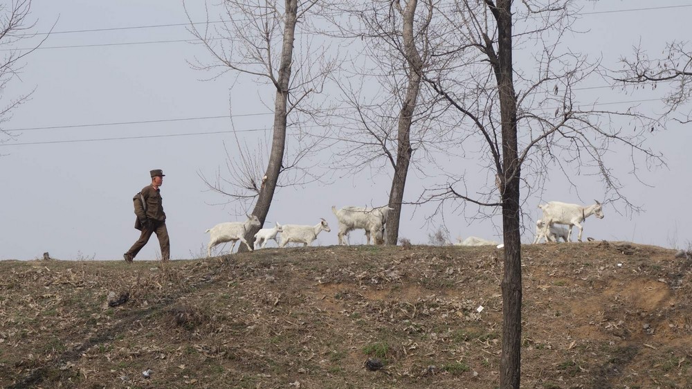 Po cestě bylo k vidění celkem velké množství vojáků. Stačilo, aby se nějaký z nich objevil v záběru náhodně, nečekaně, a už jsem musel snímek smazat, pokud si toho průvodce všiml. Vojáci, mezi nimi i ženy (ale v naprosté většině muži) hlídají například tunely, jako by je někdo chtěl ukrást nebo snad vyhodit do vzduchu. Velká část vojáků se ale věnuje zcela civilním pracím jako zemědělství a stavebnictví. Při jednom zastavení na přestávku uprostřed dálnice, na žádném odpočívadle, prostě jen tak u krajnice, kde nebylo naprosto nic, jsem viděl pasáka koz v uniformě Korejské lidové armády. Nikdo se na mě zrovna nedíval, ani on ne, tak jsem si ho vyfotil, s tím, že nanejvýš se omluvím a fotku smažu. Prošlo to.