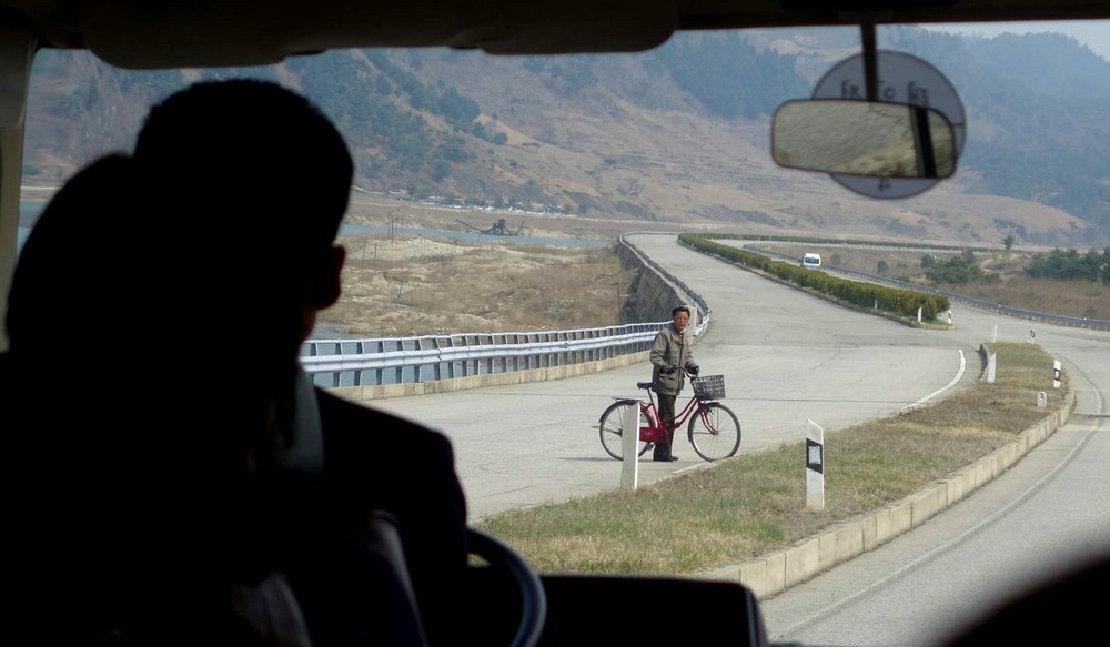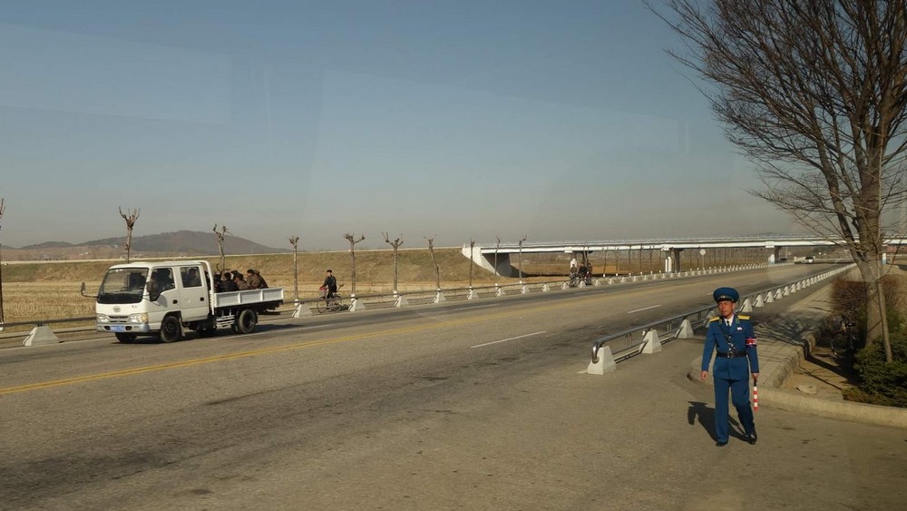 Z Pchjongjangu jsme směřovali na sever po dálnici se dvěma jízdními pruhy v každém směru, v počátečním úseku označenými bílými čarami a navzájem oddělenými dvojitou žlutou čarou, později již bez jakéhokoli značení jen jako obrovská asfaltová plocha o šíři čtyř jízdních pruhů, po které si vozidla jezdila zcela libovolně „cikcak“, vyhýbajíce se dírám, puklinám a nerovnostem. Stav vozovky byl žalostný, byla plna děr, prasklin a záplat, záplatování však svědčilo o pravidelné údržbě a dálnice byla sice nepohodlně, ale sjízdná. Přirovnal bych jí k české D1 před rekonstrukcí.