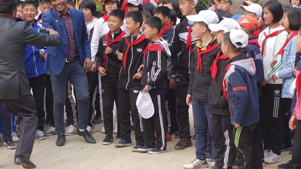 V areálu jsme potkali velké množství pionýrů, tedy členů Korejského svazu dětí (opakuji, že v korejštině se jim „pionýři“ neříká), kteří nám nadšeně mávali a někdy i salutovali pionýrským pozdravem. Jejich sportovní oblečení nebylo jednotné, ale tvořily je teplákové soupravy s kalhotami s bundami různých barev a kombinací, nejčastěji černé a modré u chlapců a červené a oranžové u děvčat. Některé oděvy nesly korejskou značku, mnohé ale byly označeny značkami Puma a Adidas. Nemalá část dětí měla bílé kšiltovky. Podobně byli oblečeni i jejich vedoucí, muži i ženy. Všechny děti byly dobře a čistě oblečeny a obuty, působily dobře živeným a zdravým, veselým a spokojeným dojmem. Možná si někdo pomyslí, že to je snad samozřejmé, ale bohužel tomu tak není ani v naší zemi, že by o každé dítě bylo dobře postaráno, o cizině vůbec nemluvě a o rozvojových zemích a válkami zmítaných oblastech už vůbec ne. Nemohu ale soudit, do jaké míry je dětská rekreace v Mjohjangsanu s takto vzorným vybavením dětí dostupná.
