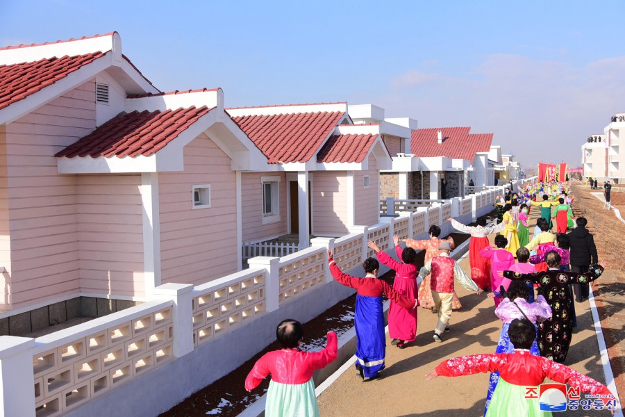 Pchjongjang 7. prosince čučche 111 (2022) (KCNA) – Díky vznešenému plánu Ústředního výboru strany přeměnit všechny vesnice v zemi na socialistické ideální vesnice, které nám bude závidět každý na světě, byly skvěle postaveny obytné budovy ve stovkami bytů na zeleninové farmě Pesan v okrese Undžong a zeleninové farmě Sosin v obvodě Rjokpcho města Pchjongjangu, zemědělské farmě Časan ve městě Pchjongsong v provincii Jižní Pchjongan a farmě Rjonghung v okrese Tchečchon provincie Severní Pchjongan.