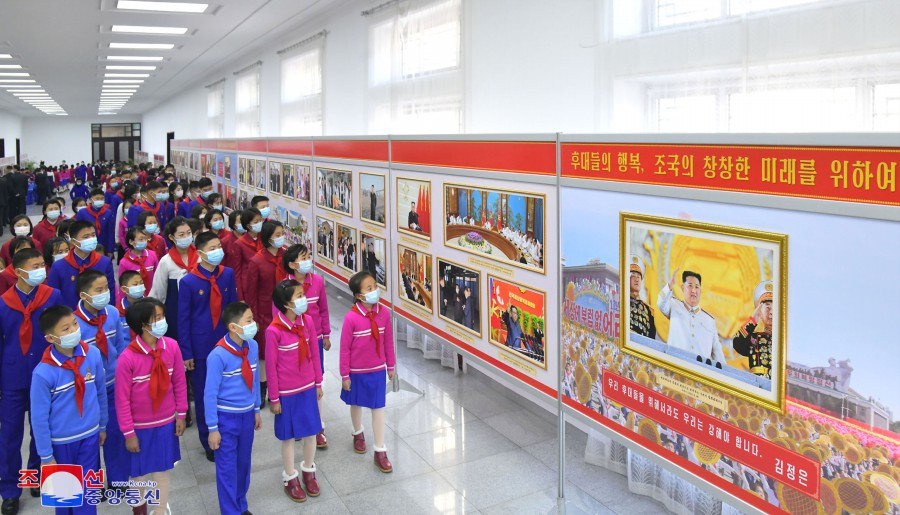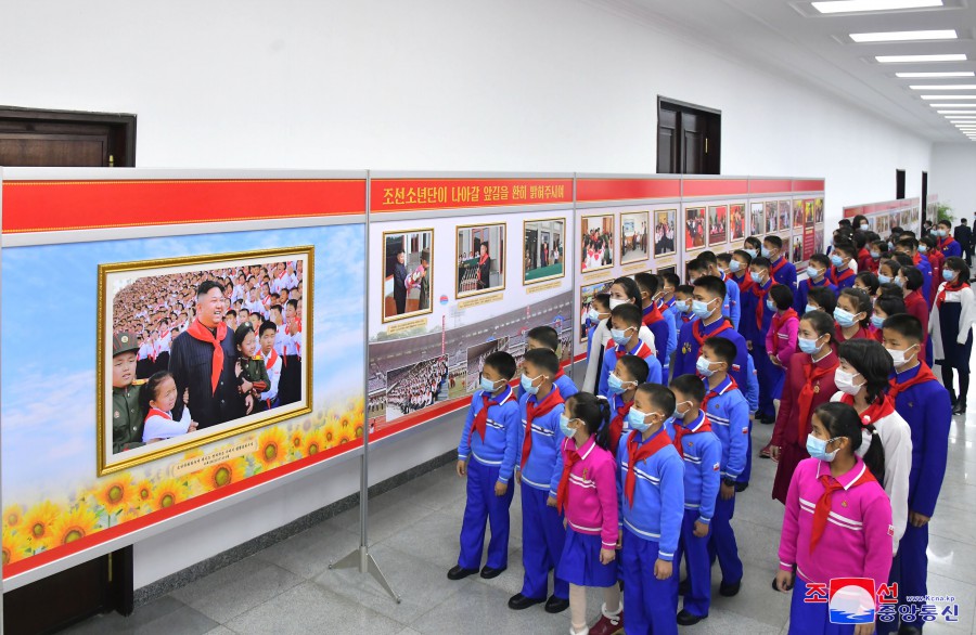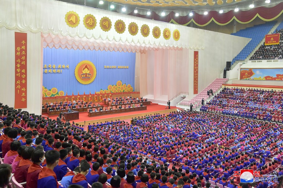 Účastníkům 9. sjezdu Korejského svazu dětí bylo s úctou přečteno programové poselství generálního tajemníka Korejské strany práce a předsedy pro státní záležitosti Korejské lidově demokratické republiky, milovaného otce našich školáků, váženého maršála Kim Čong Una „Pod vlajícím praporem Svazu dětí do budoucnosti mocného státu“.