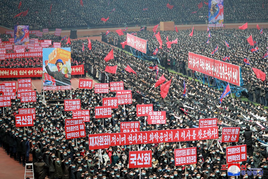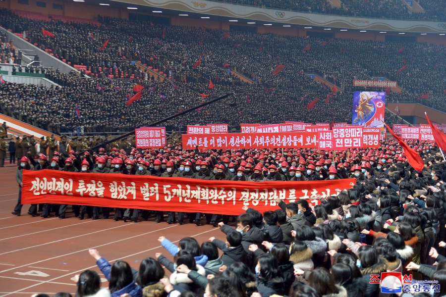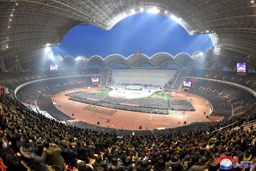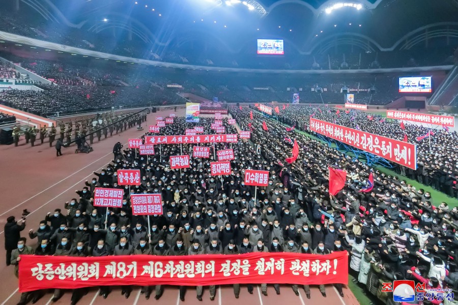 Pchjongjang 6. ledna čučche 112 (2023) (KCNA) – 5. ledna se na Stadionu 1. máje konalo shromáždění odhodlání občanů města Pchjongjangu za důsledné plnění usnesení 6. pléna 8. Ústředního výboru Korejské strany práce, které osvětlilo cestu vpřed k novému pokroku a skoku vpřed socialismu našeho stylu.