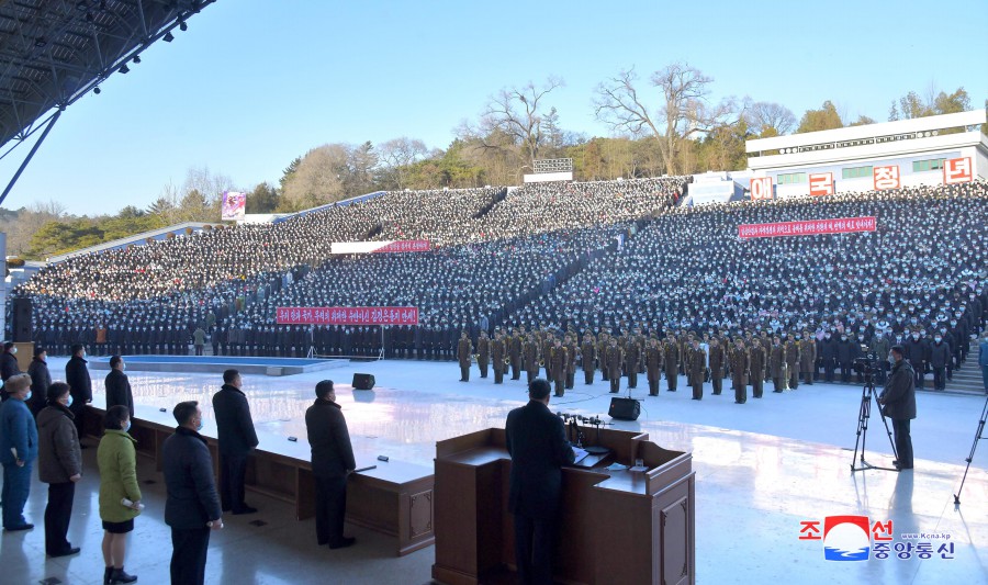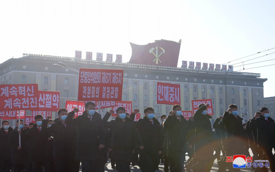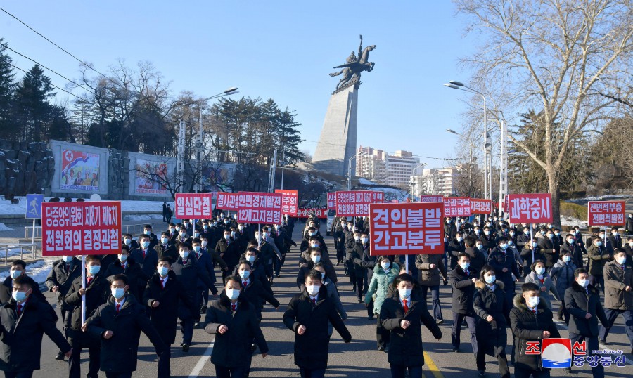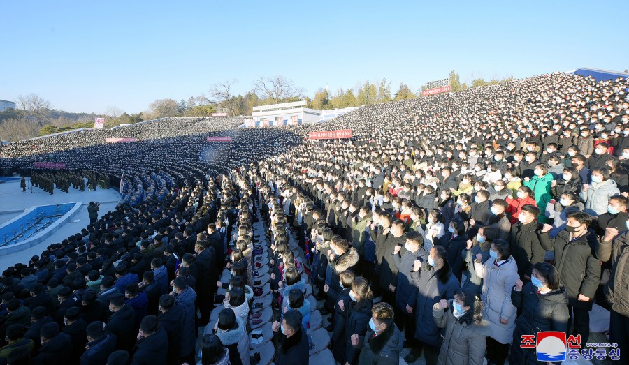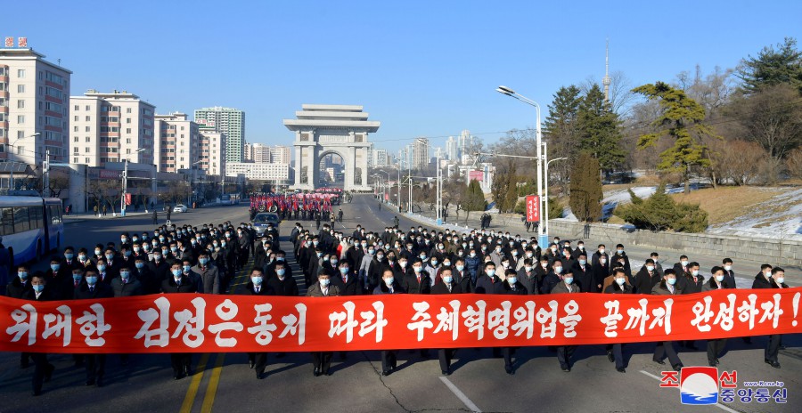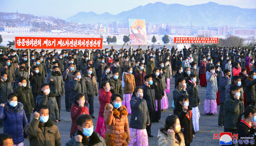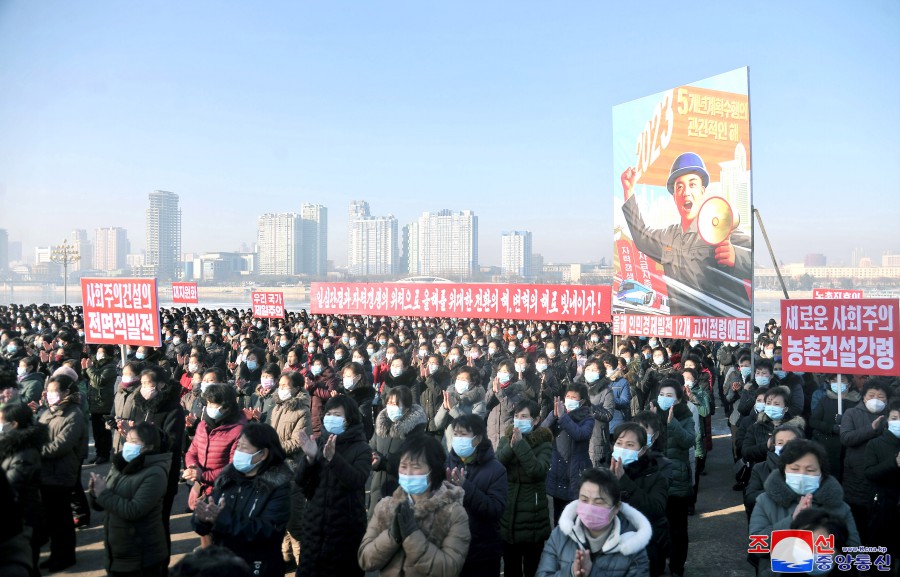 Pchjongjang 12. ledna čučche 112 (2023) (KCNA) – 11. ledna se konala shromáždění odhodlání organizací pracujícího lidu k důslednému provádění usnesení 6. pléna 8. Ústředního výboru Korejské strany práce v obvodě Čchollima a ve vsi Čchongsan-ri obvodu Kangso města Nampcho a na náměstí před Věží myšlenky čučche.
