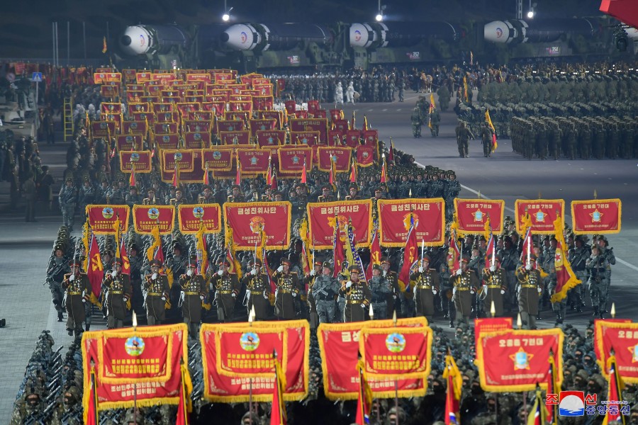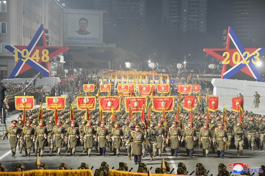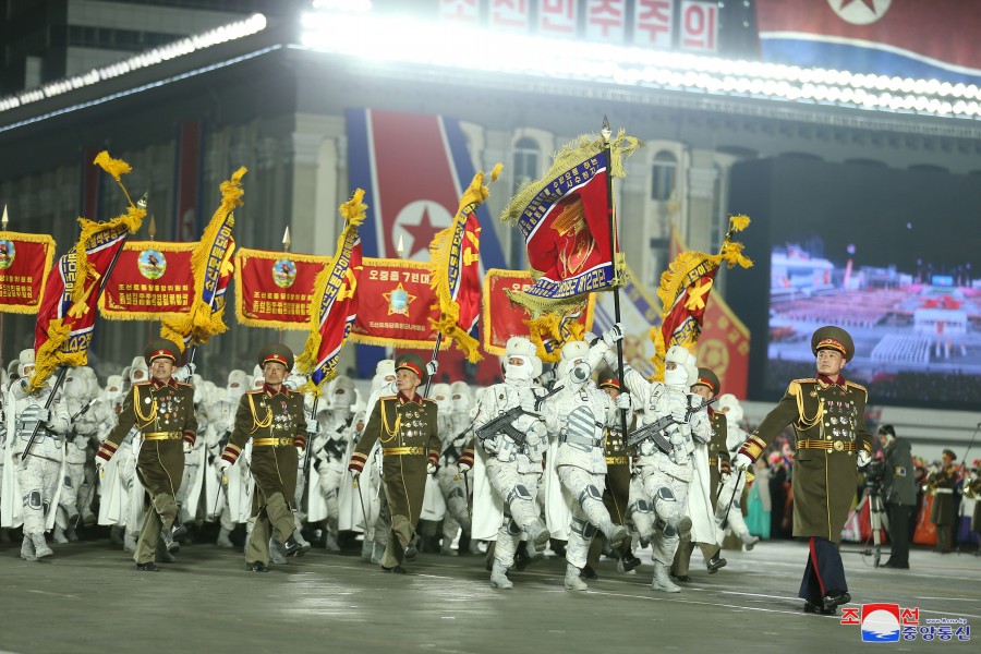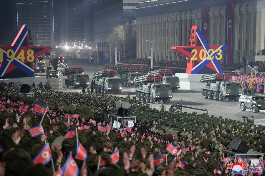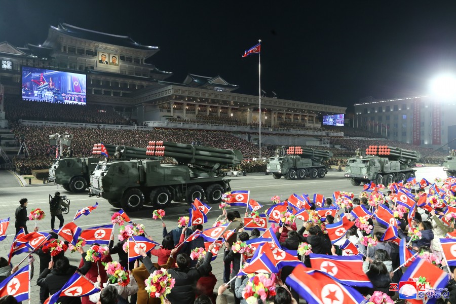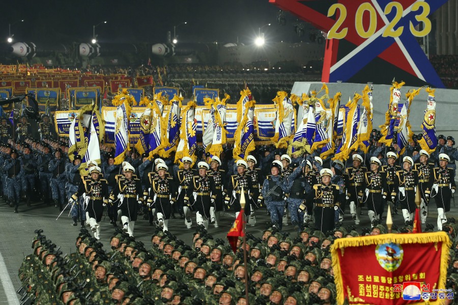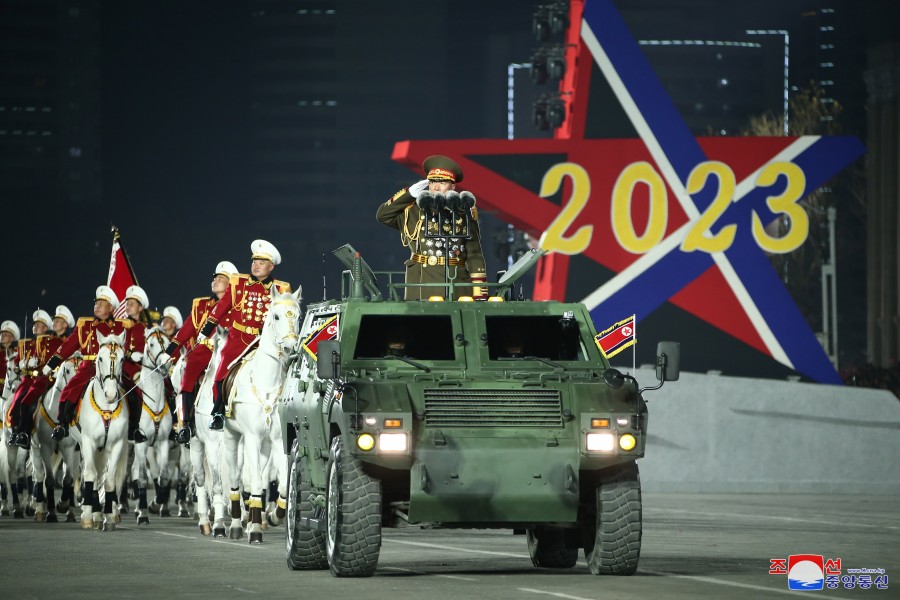 Pchjongjang 9. února čučche 112 (2023) (KCNA) – Na Kim Ir Senově náměstí v hlavním městě Pchjongjangu se 8. února konala velká vojenská přehlídka na oslavu 75. výročí založení Korejské lidové armády, revolučních ozbrojených sil Korejské strany práce.