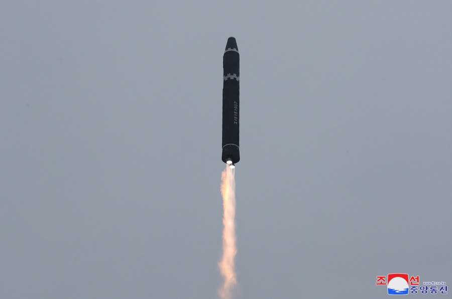 Pchjongjang 19. února čučche 112 (2023) (KCNA) – 18. února odpoledne se uskutečnilo cvičné odpálení mezikontinentální balistické střely.