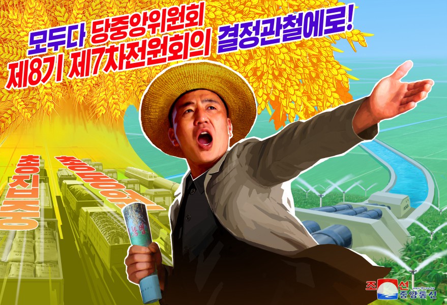 Pchjongjang 6. března čučche 112 (2023) (KCNA) – Nakladatelství Korejské strany práce a Umělecké studio Mansude vytvořily nové plakáty, které vyzývají všechen lid k uskutečnění závěrů 7. pléna 8. Ústředního výboru strany.
