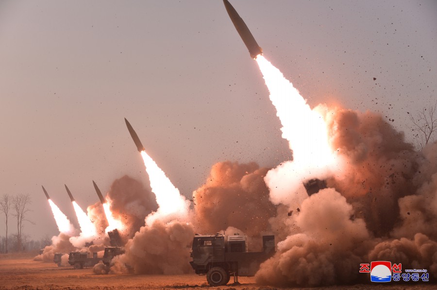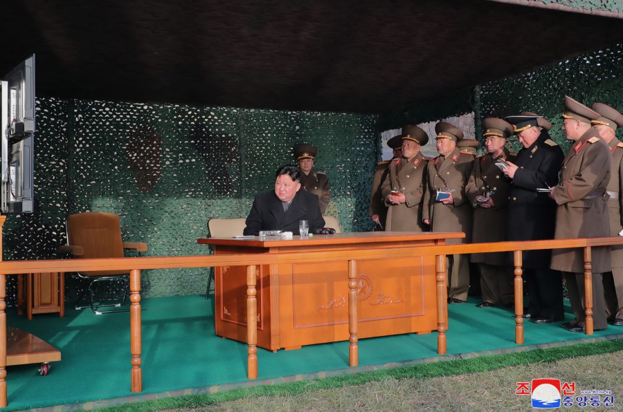 Pchjongjang 10. března čučche 112 (2023) (KCNA) – Generální tajemník Korejské strany práce a předseda pro státní záležitosti Korejské lidově demokratické republiky vážený soudruh Kim Čong Un poskytl 9. března terénní pokyny raketové jednotce Hwasong, pověřené důležitým operačním úkolem Korejské lidové armády na západní frontě, a sledoval nácvik palebného útoku.
