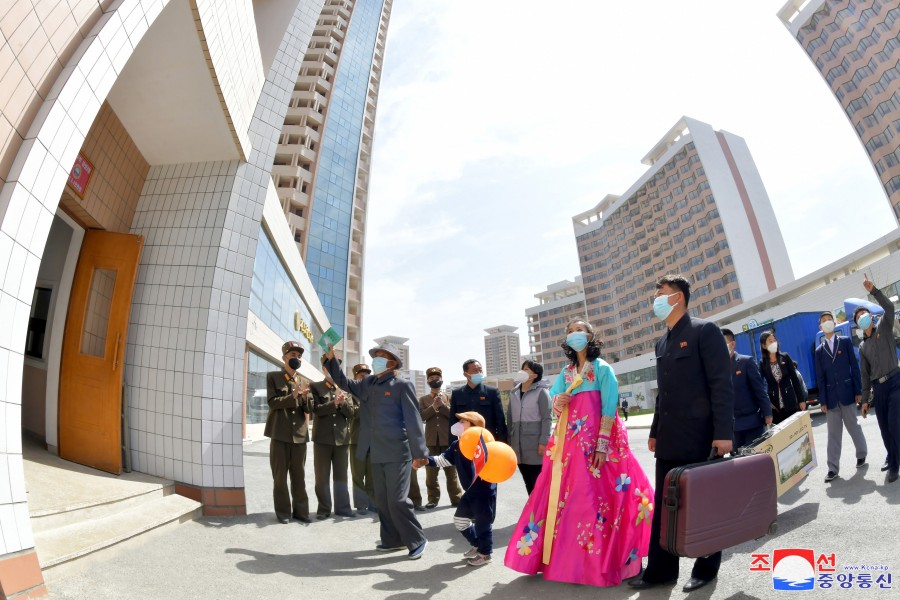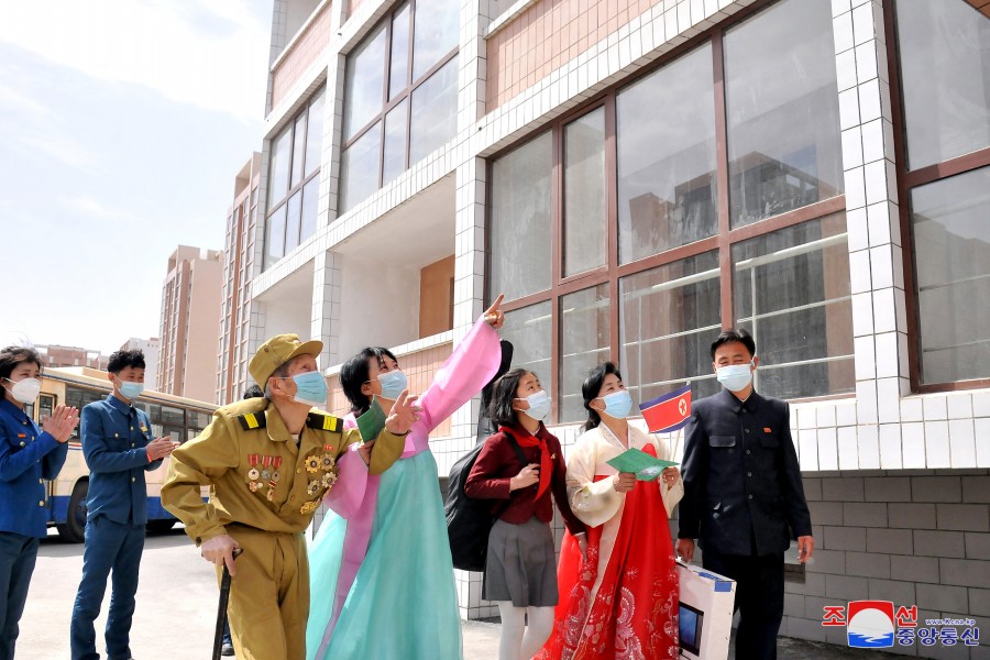 Funkcionáři vedení stavby 50 tisíc bytů v Pchjongjangu, velící důstojníci Korejské lidové armády, kteří se podíleli na bytové výstavbě, funkcionáři strany a správních orgánů ve městě a vojenští i civilní budovatelé blahopřáli pracujícím lidem, kteří se přestěhovali do moderních domy poskytnutých zdarma stranou a státem.