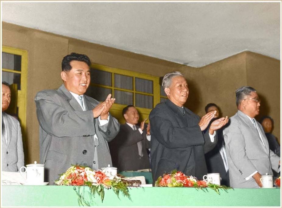 Kim Ir Sen s předsedou Čínské lidové republiky Liou Šao-čchi na návštěvě Pchjongjangu v září 1963. Zdroj: Nakladatelství cizojazyčné literatury (KLDR)
