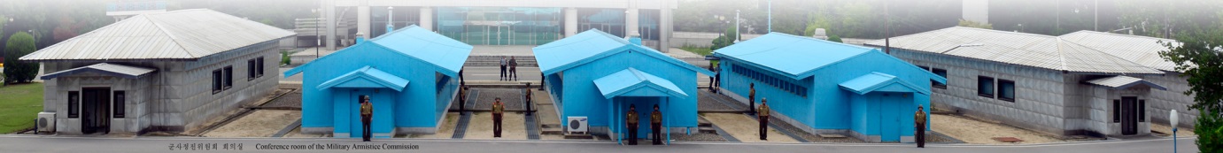 Demarkační linie v Pchanmundžomu na snímku zveřejněném v roce 2016. Zdroj: Nakladatelství cizojazyčné literatury (KLDR)
