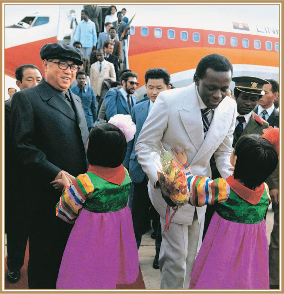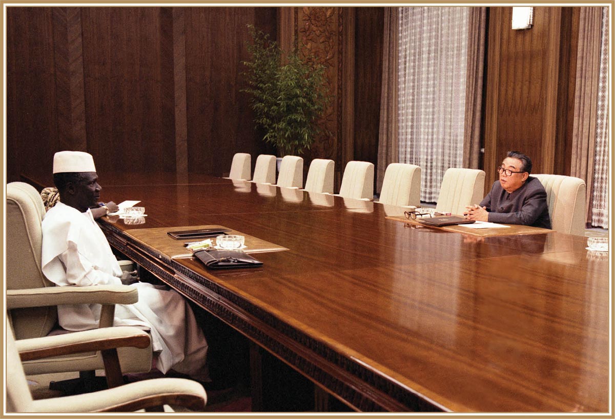 Kim Ir Sen s Ahmedem Sékou Tourém, prezidentem Guinejské lidové revoluční republiky, říjen 1980. Zdroj: Nakladatelství cizojazyčné literatury (KLDR)