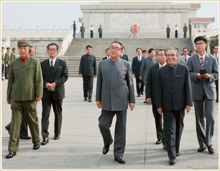 Kim Ir Sen si prohlíží Památník lidových hrdinů v Pekingu v září 1982. Zdroj: Nakladatelství cizojazyčné literatury (KLDR)