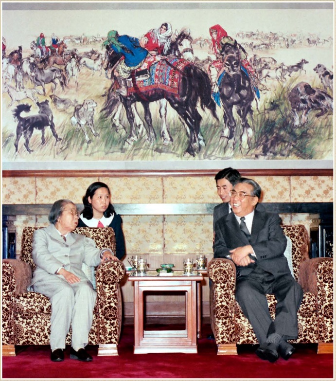Kim Ir Sen s Teng Jing-čchao v Pekingu v květnu 1987. Zdroj: Nakladatelství cizojazyčné literatury (KLDR)