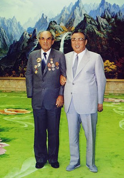 Kim Ir Sen s J. T. Novičenkem*, patrně při jeho návštěvě KLDR v červenci 1984. Zdroj: diletant.media