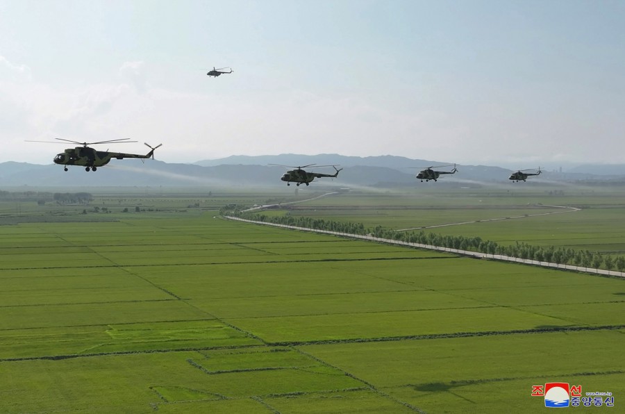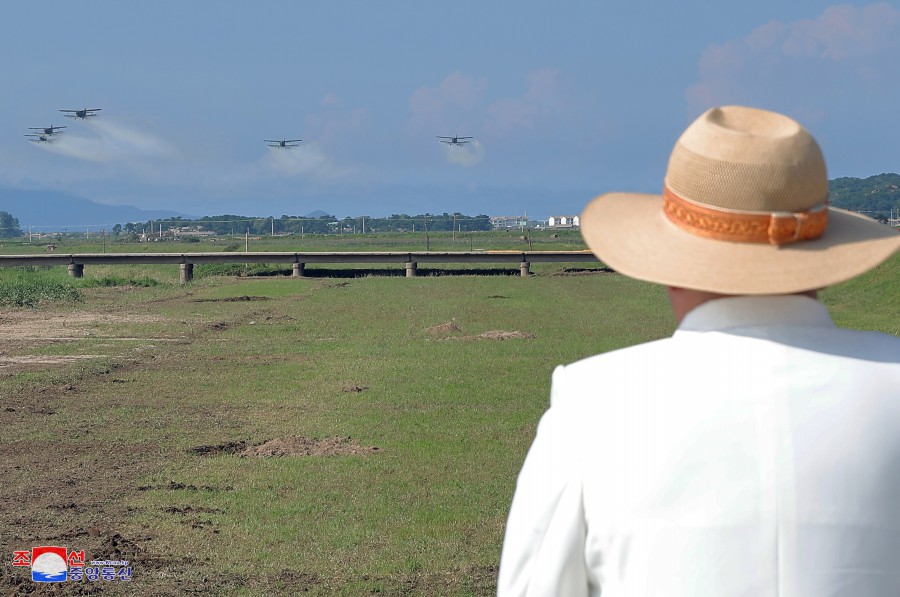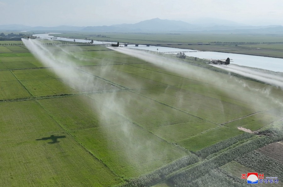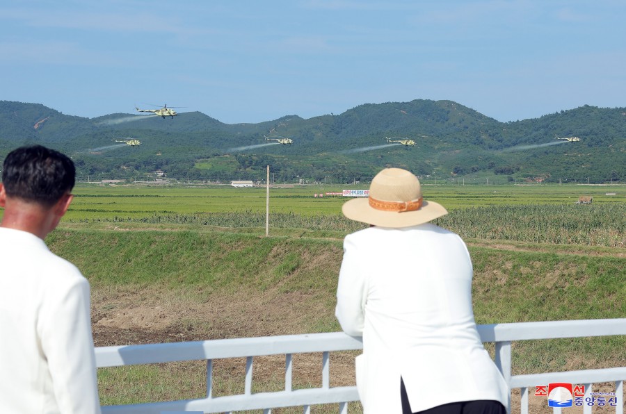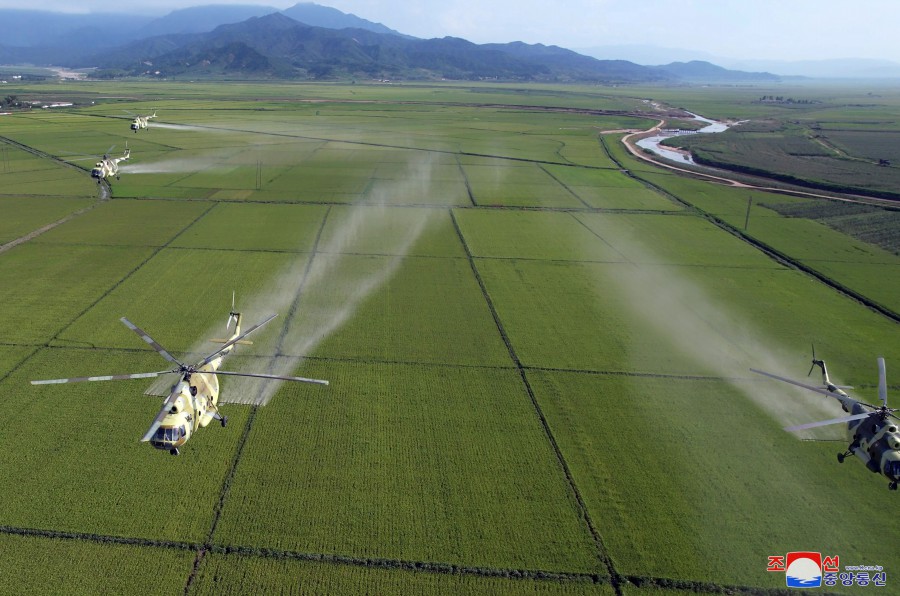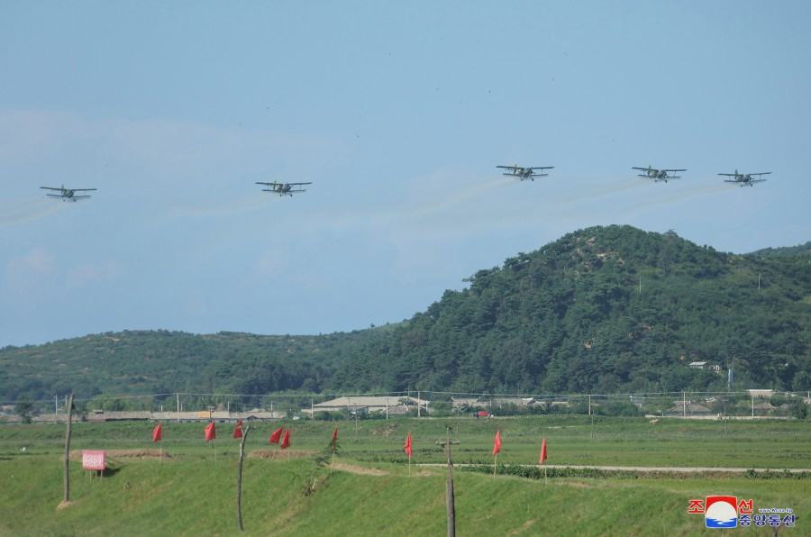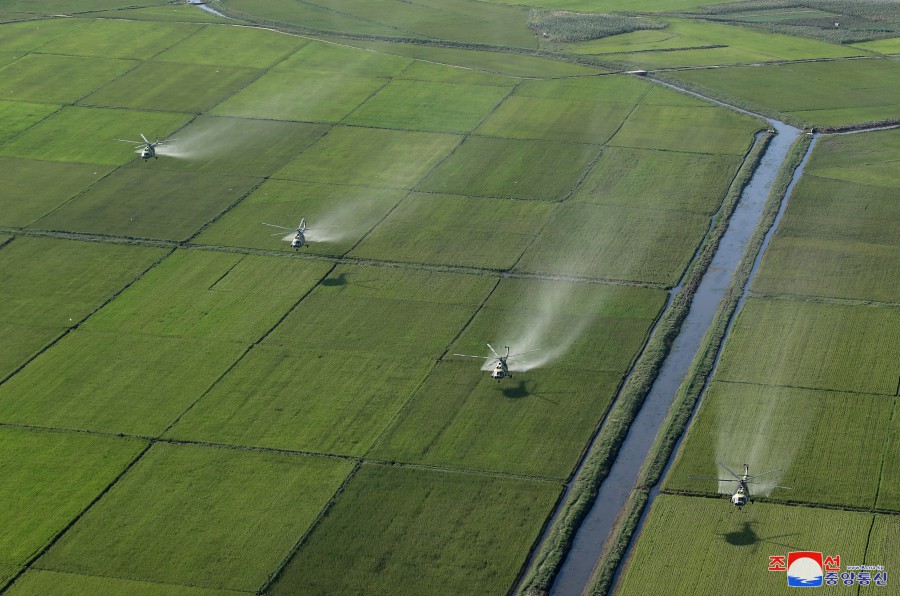 Vážený soudruh Kim Čong Un v rámci opatření ke zlepšení vegetativního stavu zemědělských plodin na zaplavených polích přijal opatření k mobilizaci vrtulníků a lehkých letadel jednotky vzdušných sil Korejské lidové armády, poté osobně organizoval a dohlížel na proces rozprašování pesticidů.