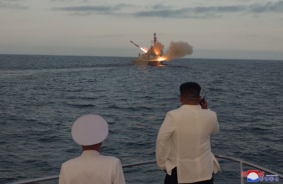 V tento den vážený soudruh Kim Čong Un sledoval cvičení námořníků hlídkové lodi na odpálení strategické řízené střely.