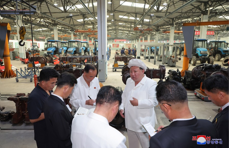 Pchjongjang 24. srpna čučche 112 (2023) (KCNA) – Generální tajemník Korejské strany práce a předseda pro státní záležitosti Korejské lidově demokratické republiky vážený soudruh Kim Čong Un 23. srpna vedl na místě práci Traktorového závodu Kumsong.