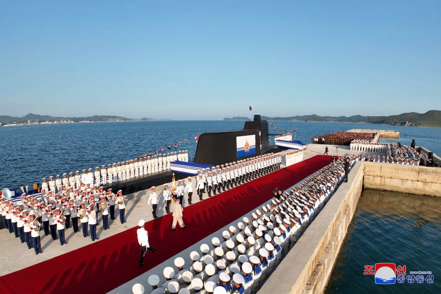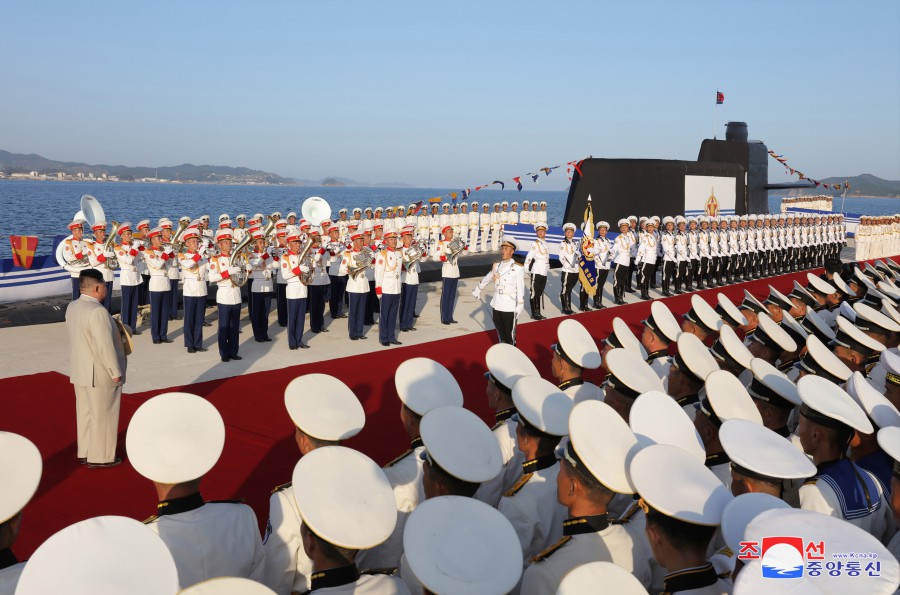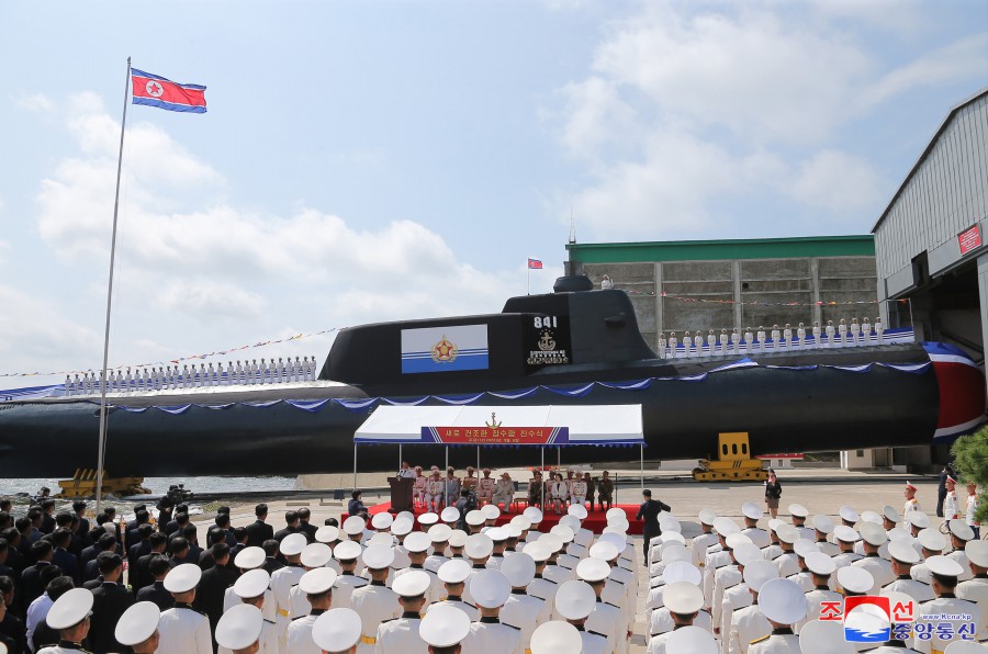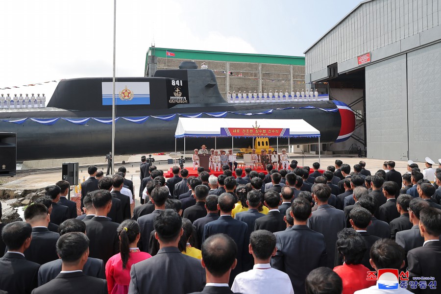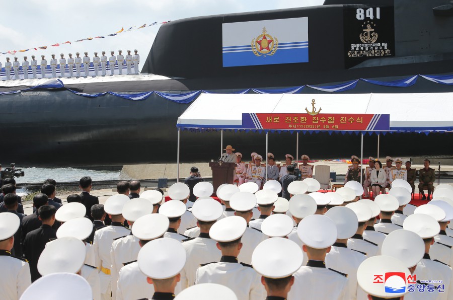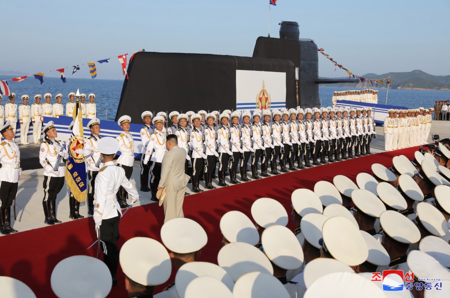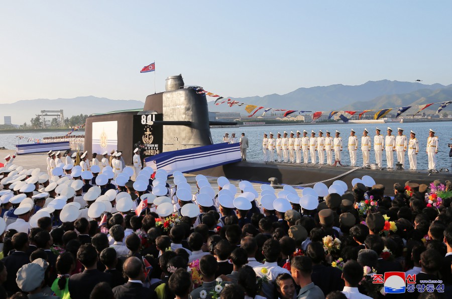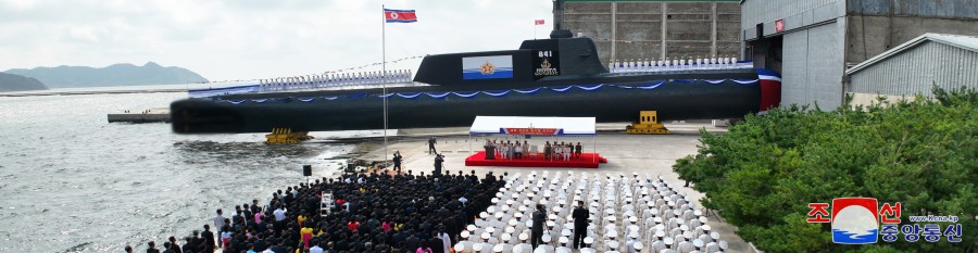 Pchjongjang 8. září čučche 112 (2023) (KCNA) – Za účasti generálního tajemníka Korejské strany práce a předsedy pro státní záležitosti Korejské lidově demokratické republiky váženého soudruha Kim Čong Una se 6. září se konal slavnostní obřad vypuštění ponorky, který ohlašuje zrod první ponorky s jadernými útočnými zbraněmi, zahájení nové fáze posilování námořnictva KLDR, a jasně demonstruje neotřesitelnou vůli naší strany a vlády pro zlepšení z hlediska kvality i kvantity a skokové rozšiřování a posilování státních jaderných odstrašujících sil k zajištění míru a bezpečnosti v regionu a na planetě. Obřadu se zúčastnily přední kádry strany, vlády a ozbrojených sil, mezi nimi maršál Ri Pjong Čchol, maršál Pak Čong Čchon, premiér Kim Tok Hun a admirál námořnictva Kim Mjong Sik. Slavnost se konala v atmosféře bujné radosti a vzrušení důstojníků a námořníků Východomořské flotily námořnictva, dělníků, vědců a techniků loděnic Pongde.