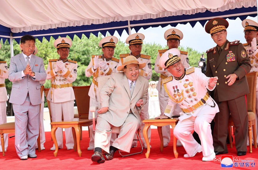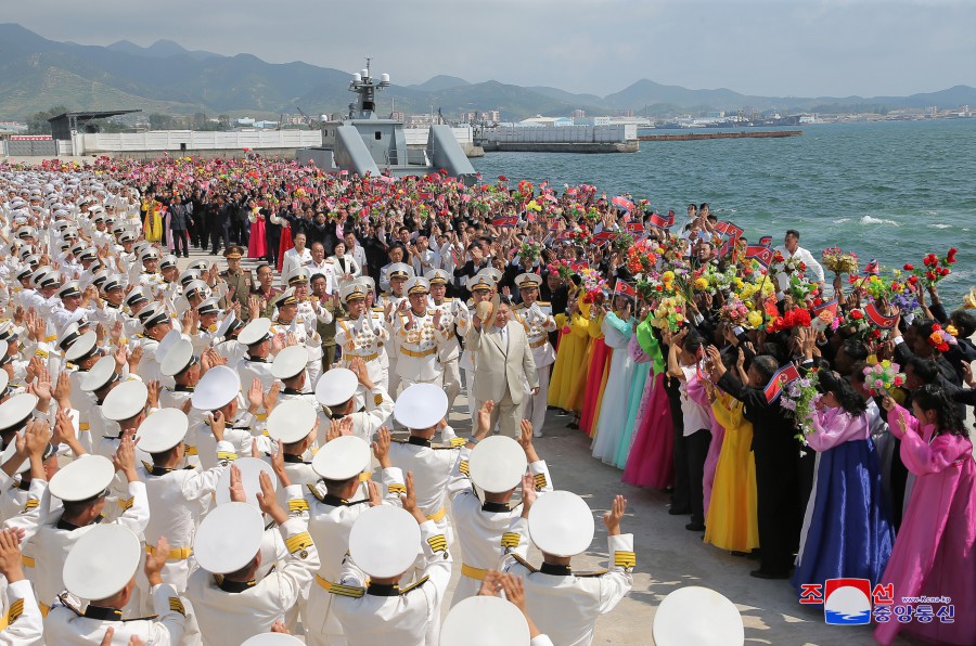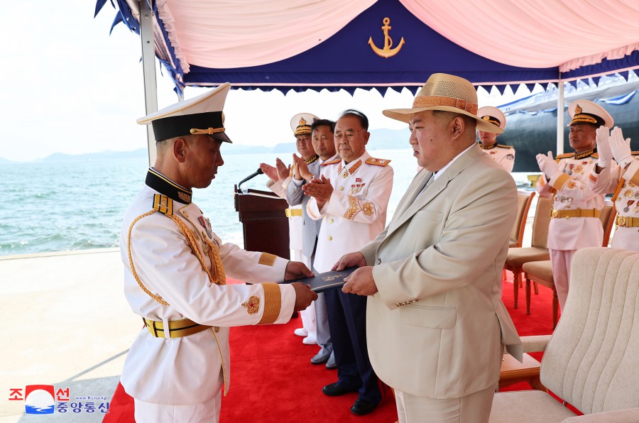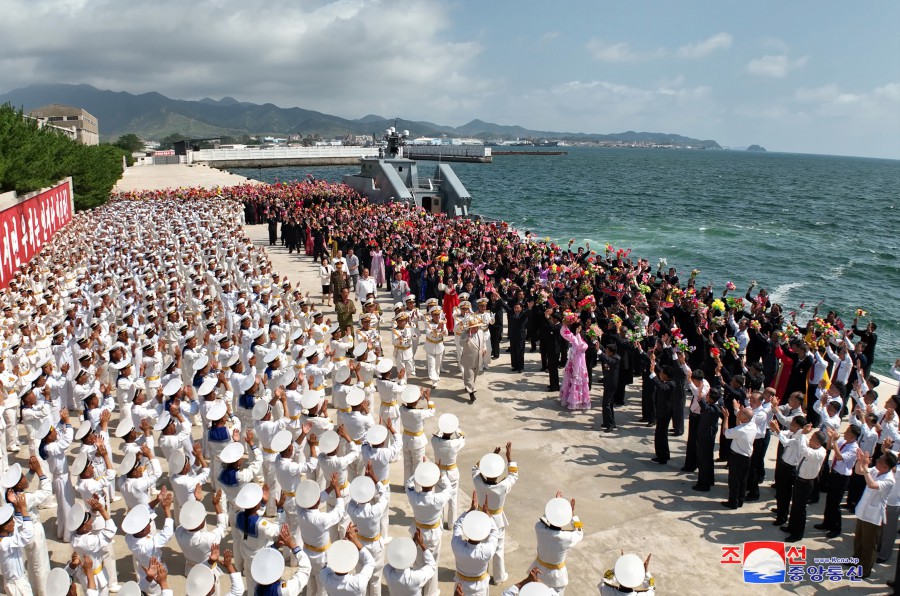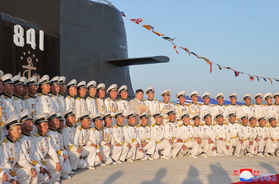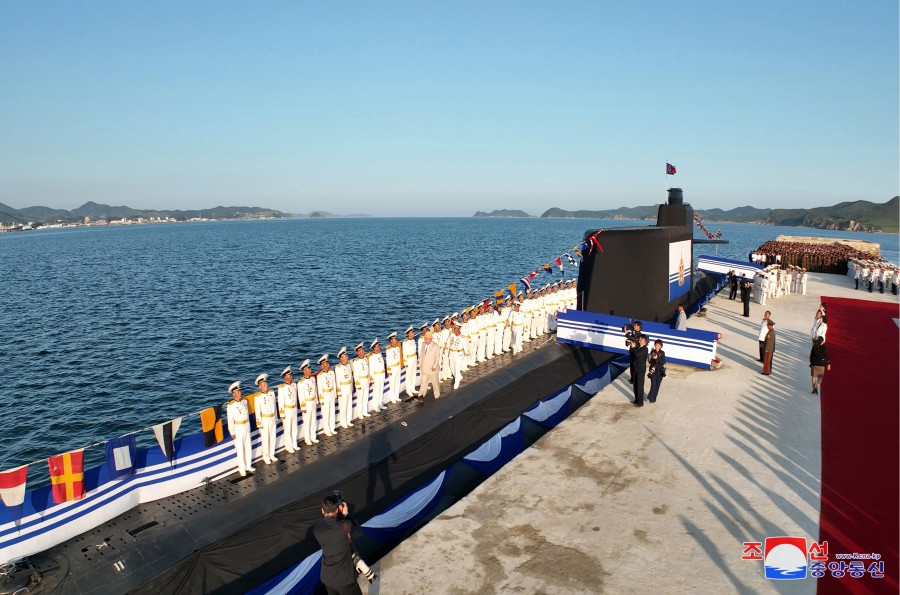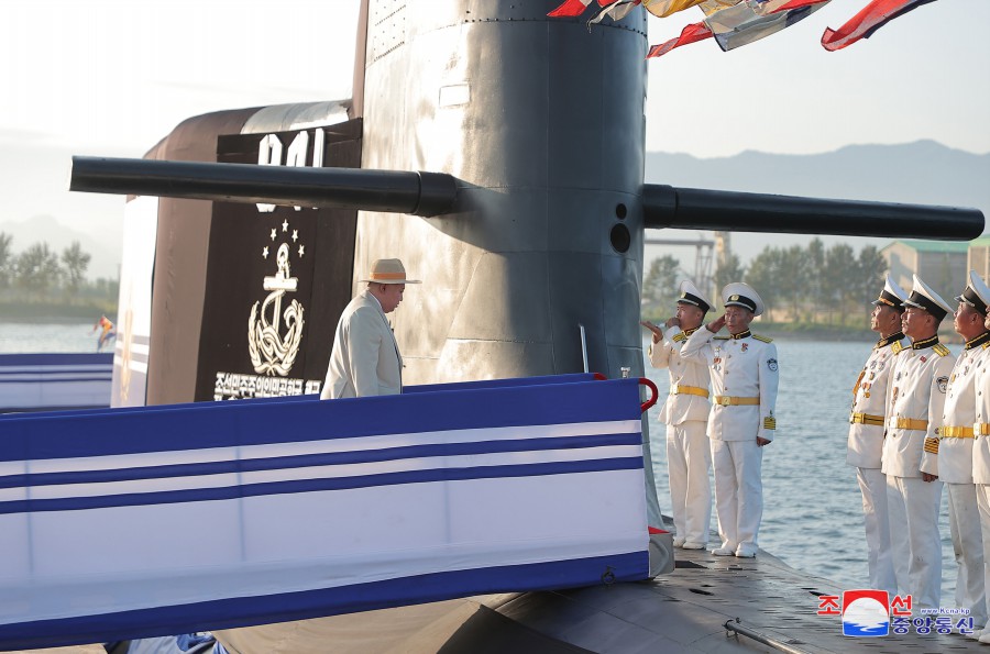 Pchjongjang 8. září čučche 112 (2023) (KCNA) – Za účasti generálního tajemníka Korejské strany práce a předsedy pro státní záležitosti Korejské lidově demokratické republiky váženého soudruha Kim Čong Una se 6. září se konal slavnostní obřad vypuštění ponorky, který ohlašuje zrod první ponorky s jadernými útočnými zbraněmi, zahájení nové fáze posilování námořnictva KLDR, a jasně demonstruje neotřesitelnou vůli naší strany a vlády pro zlepšení z hlediska kvality i kvantity a skokové rozšiřování a posilování státních jaderných odstrašujících sil k zajištění míru a bezpečnosti v regionu a na planetě. Obřadu se zúčastnily přední kádry strany, vlády a ozbrojených sil, mezi nimi maršál Ri Pjong Čchol, maršál Pak Čong Čchon, premiér Kim Tok Hun a admirál námořnictva Kim Mjong Sik. Slavnost se konala v atmosféře bujné radosti a vzrušení důstojníků a námořníků Východomořské flotily námořnictva, dělníků, vědců a techniků loděnic Pongde.