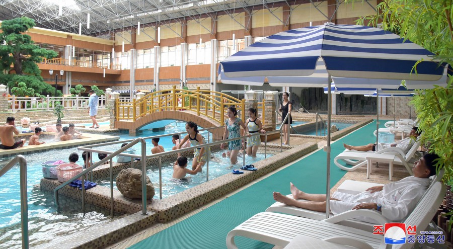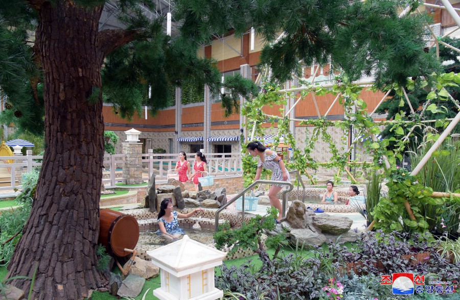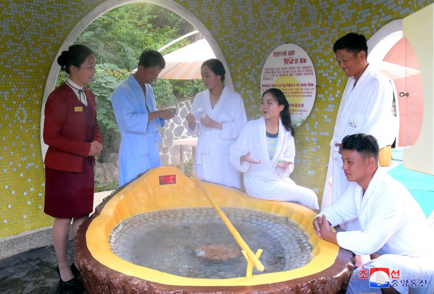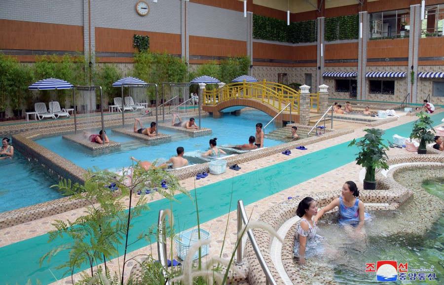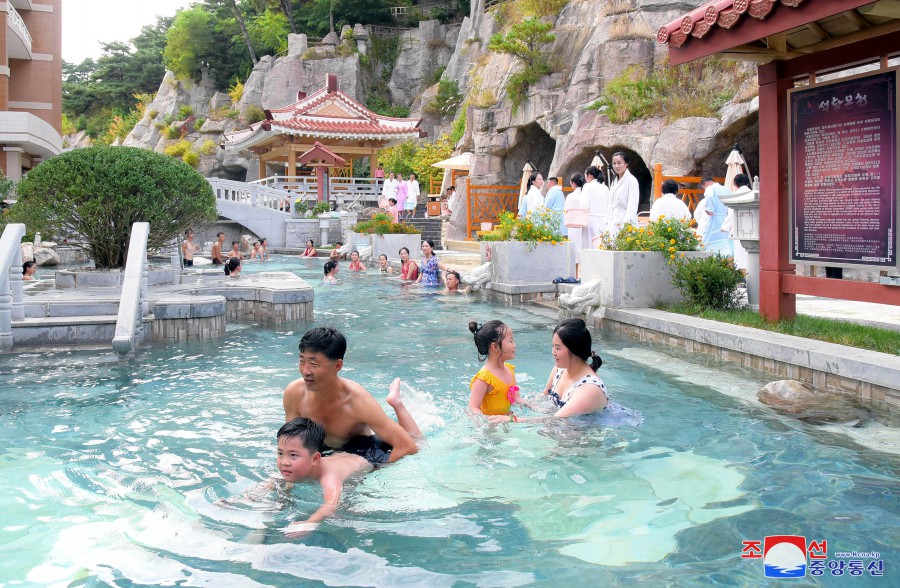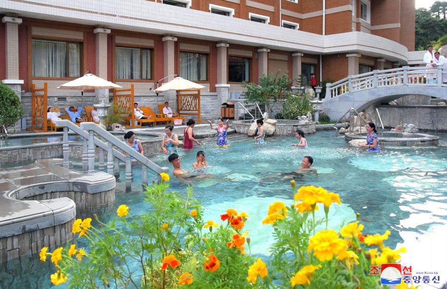 Pchjongjang 9. října čučche 112 (2023) (KCNA) – V lázeňské zóně kulturní rekreace Jangdok, kouzelném světě socialistické civilizace, zní veselý smích a písně lidu ve všech ročních obdobích.