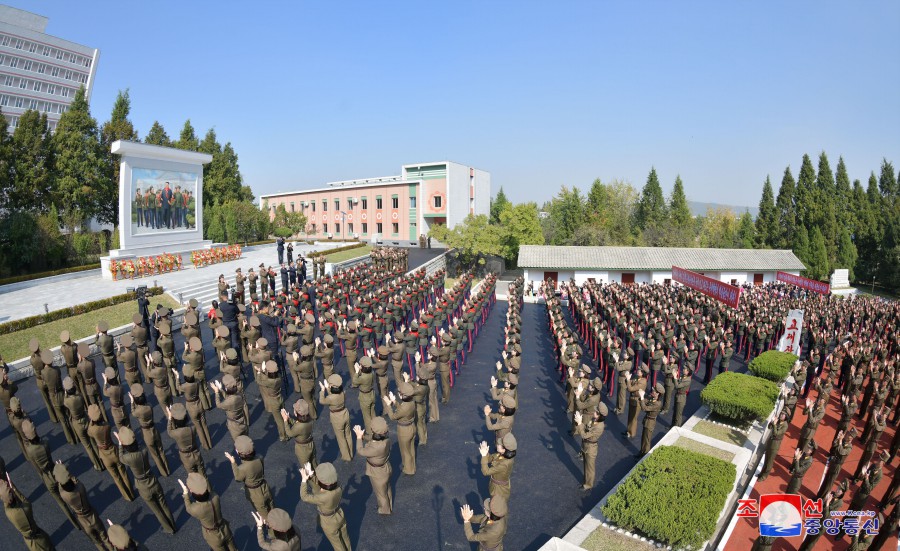 Slavnostního odhalení se zúčastnili tajemník Ústředního výboru Korejské strany práce soudruh Ri Il Hwan, první zástupce vedoucího oddělení ÚV KSP soudruh Ri Hi Jong, funkcionáři, učitelé, zaměstnanci a studenti školy.