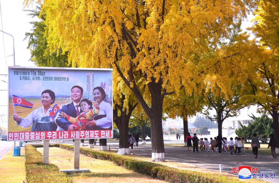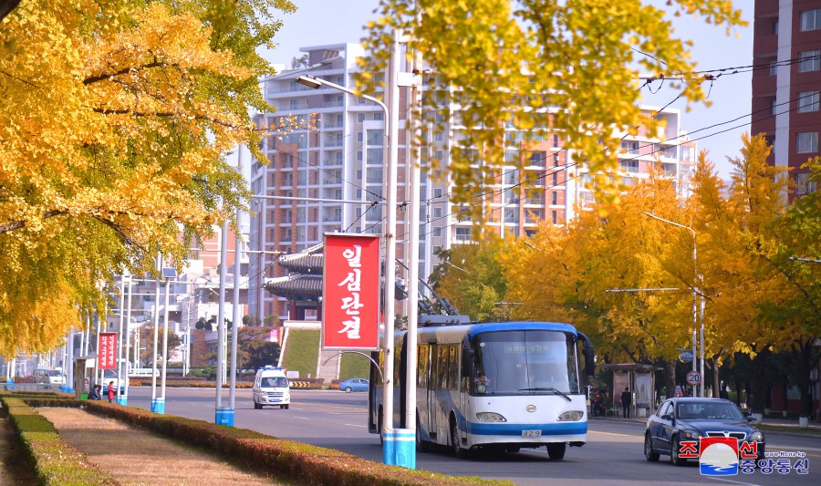Pchjongjang 29. října čučche 112 (2023) (KCNA) – V ulicích hlavního města se rozvinula jedinečná podzimní scenérie.