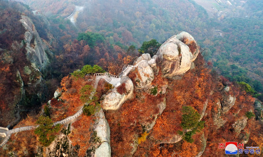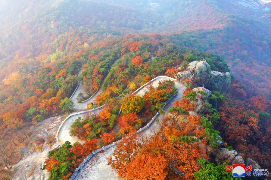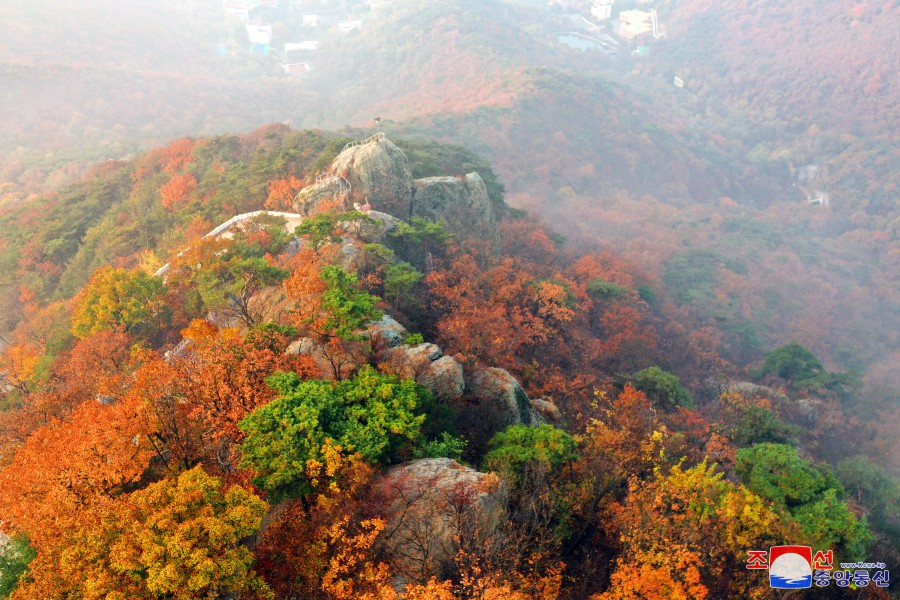 Pchjongjang 2. listopadu čučche 112 (2023) (KCNA) – Krásná podzimní scenérie, dodávající jedinečné pocity, se rozvinula na hoře Rjongaksan.
