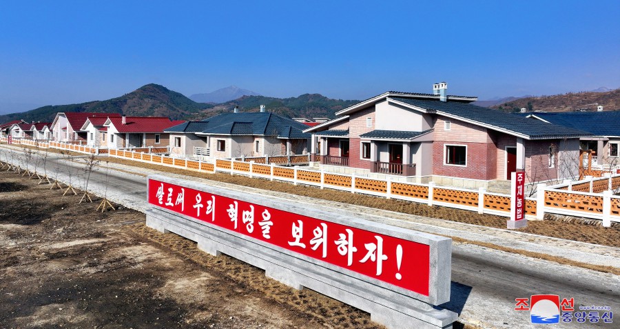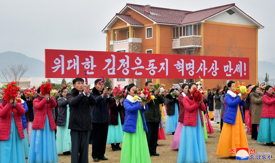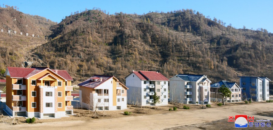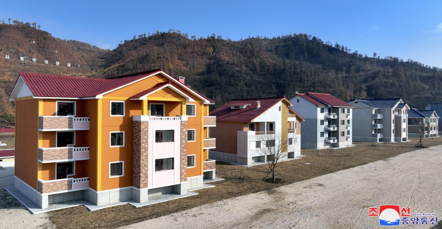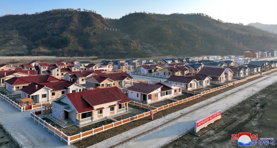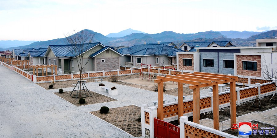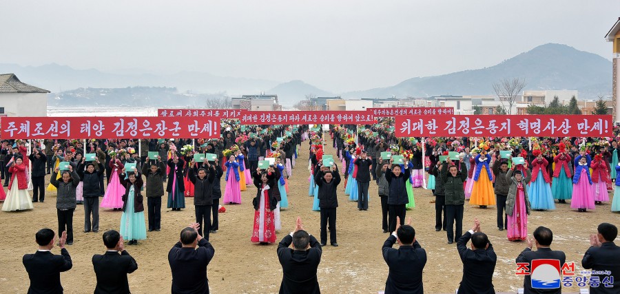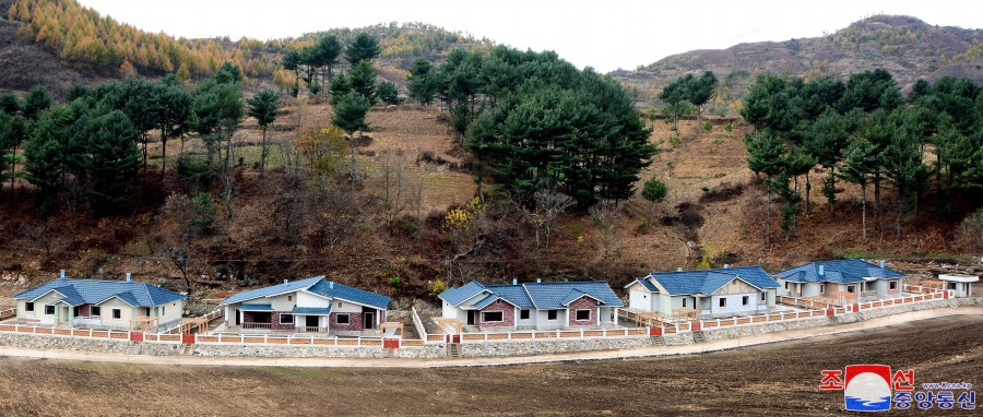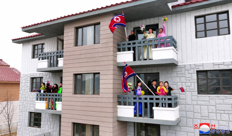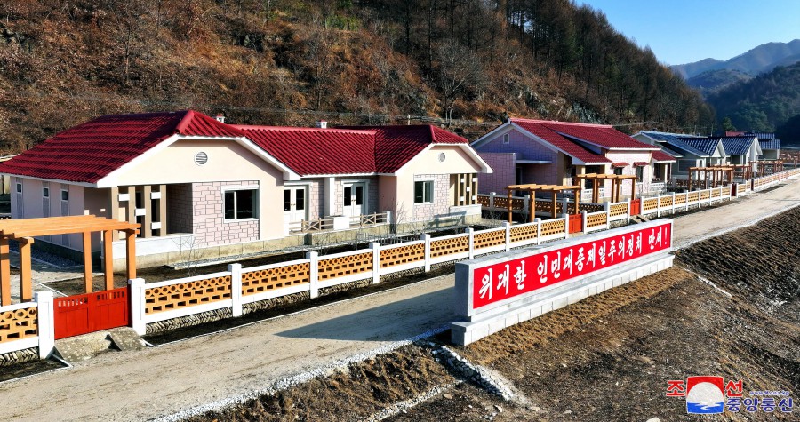 Pchjongjang 6. prosince čučche 112 (2023) (KCNA) – Slavnostní předání nových domů se konalo ve vsi zemědělského podniku Tapsang v okrese Unsan provincie Severní Pchjongan, změněné k nepoznání.