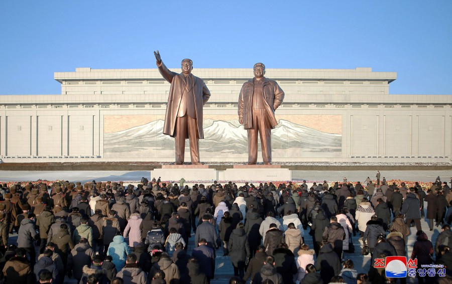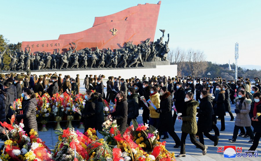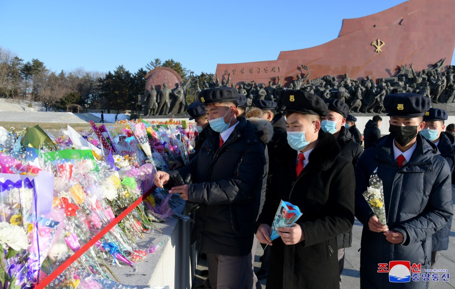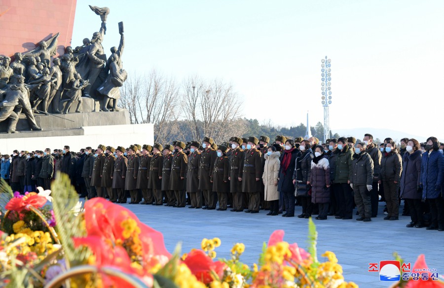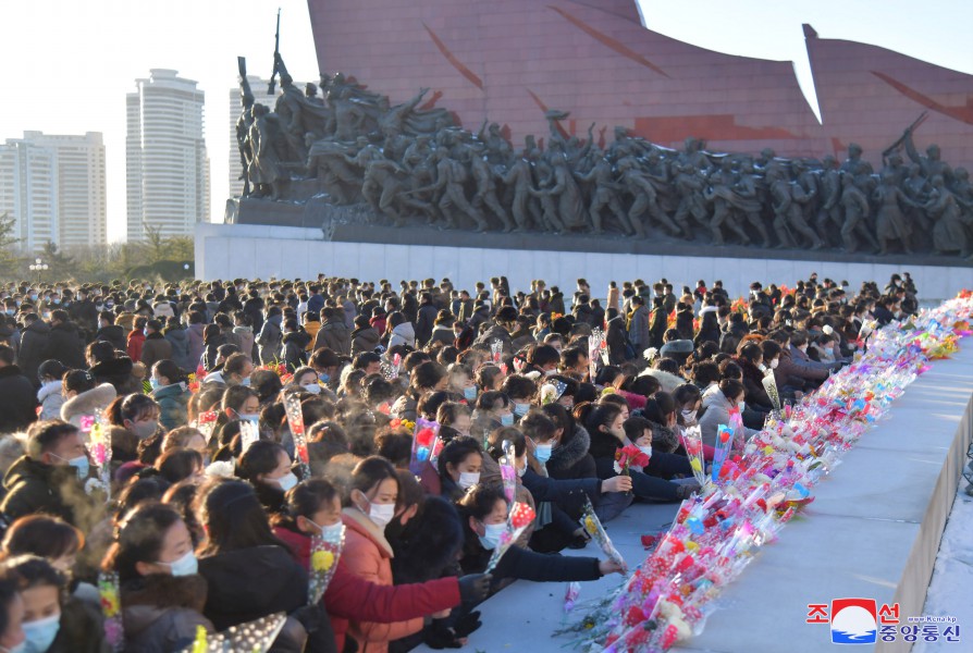 Pchjongjang 18. prosince čučche 112 (2023) (KCNA) – U příležitosti 12. výročí úmrtí velkého generála položili funkcionáři, pracující lid, vojsko lidové armády a studenti květinové koše a kytice k bronzovým sochám velkého vůdce a velkého generála a mozaikám s jejich slunečně usměvavými portréty na různých místech země.