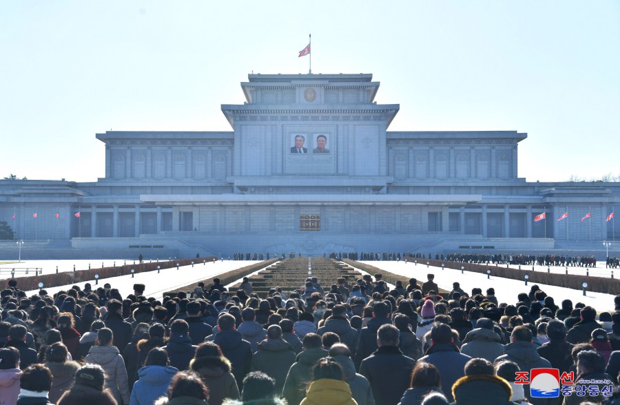 U příležitosti dne největšího národního smutku proudil nekonečný proud lidu do Paláce slunce Kumsusan, nejvyšší svatyně čučche, kde leží ve své životní podobě velký vůdce soudruh Kim Ir Sen a velký vůdce soudruh Kim Čong Il.