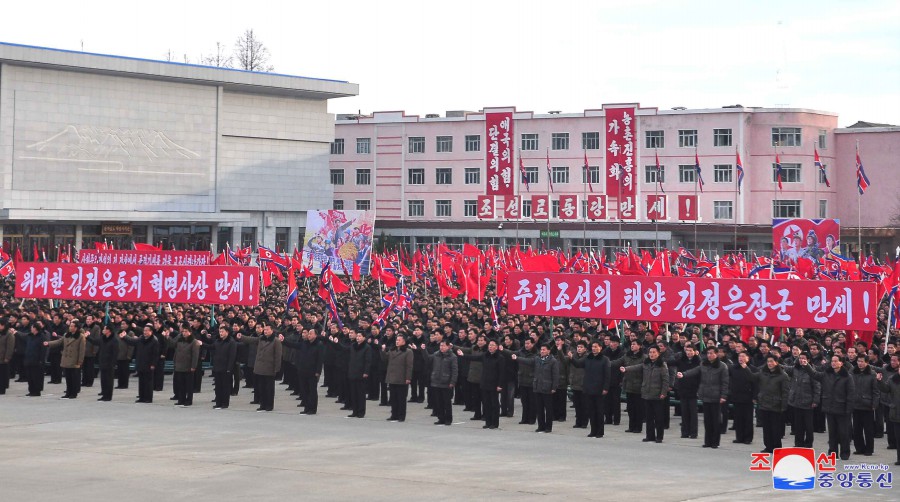 Na shromážděních byla přijata přísaha váženému soudruhu Kim Čong Unovi a následovaly masové manifestace.